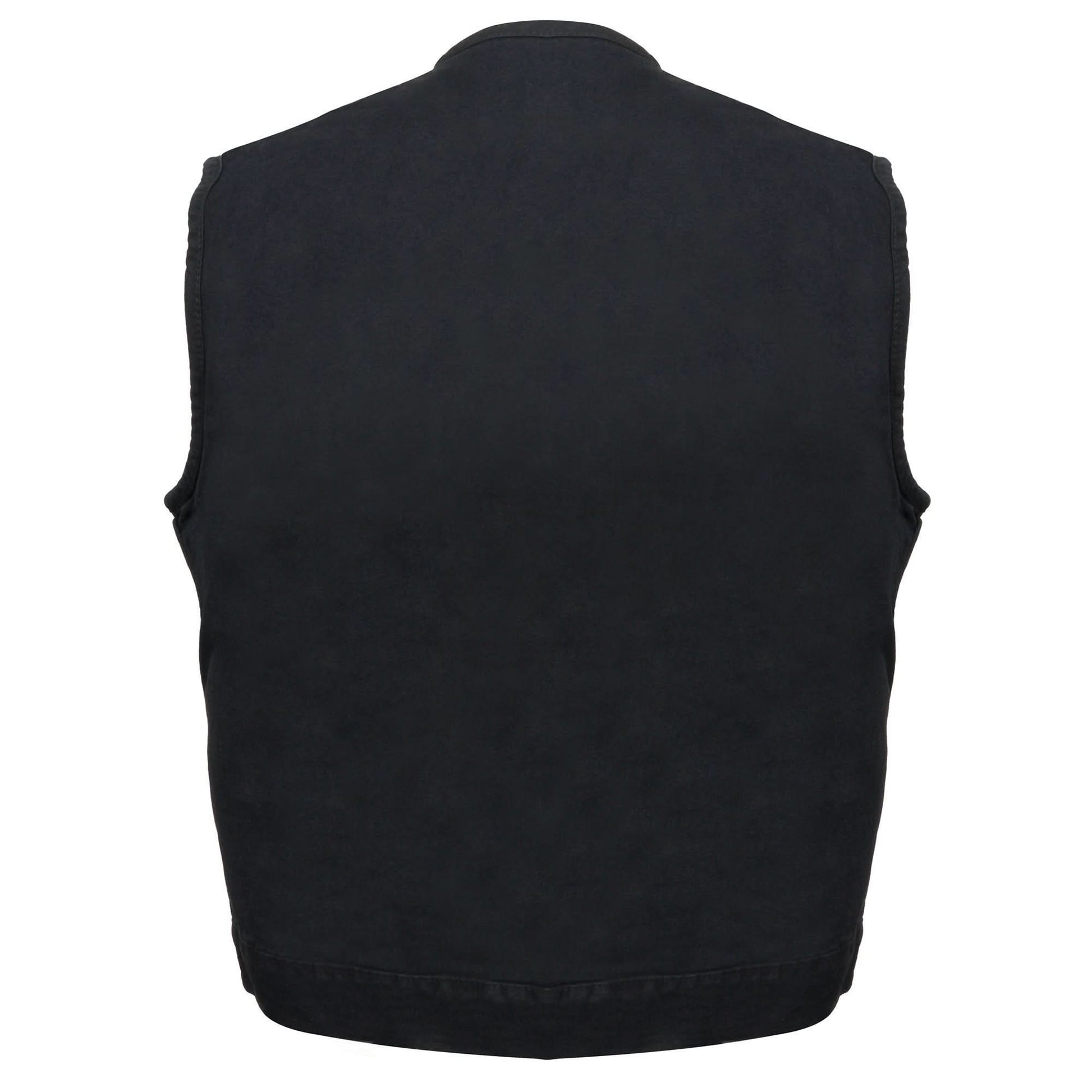 Milwaukee Leather MDM3001 Men's 'Covert' Black Denim Collarless Club Style Motorcycle Biker Vest w/ Dual Closure