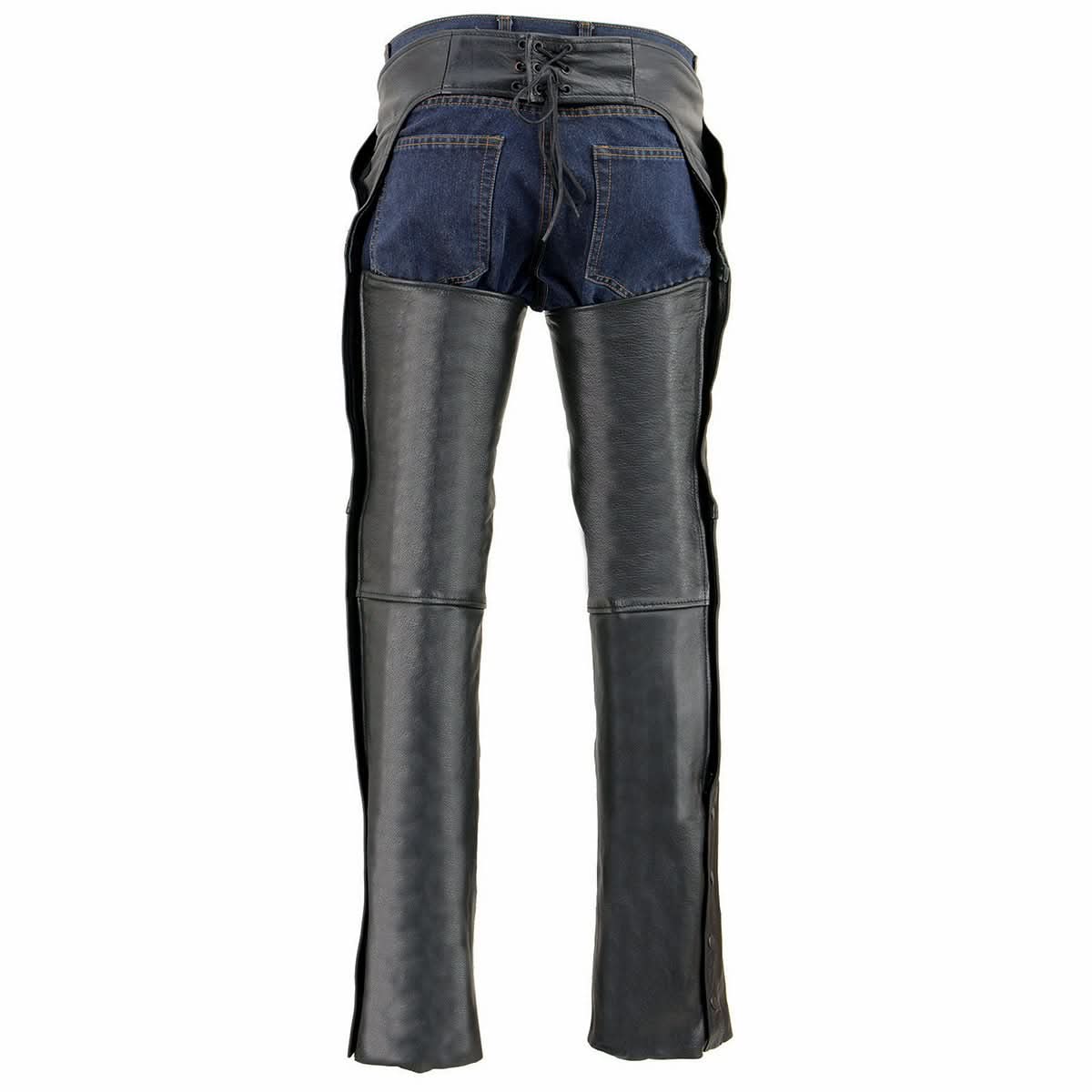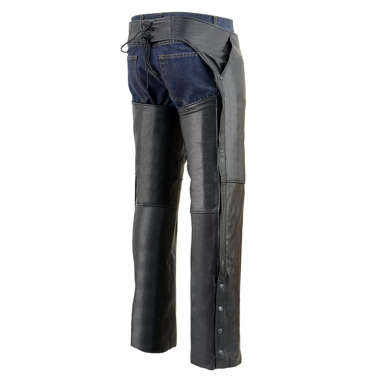 Milwaukee Leather SH1766 Men's Black Leather 3 Pocket Chaps with Thigh Patch Pocket