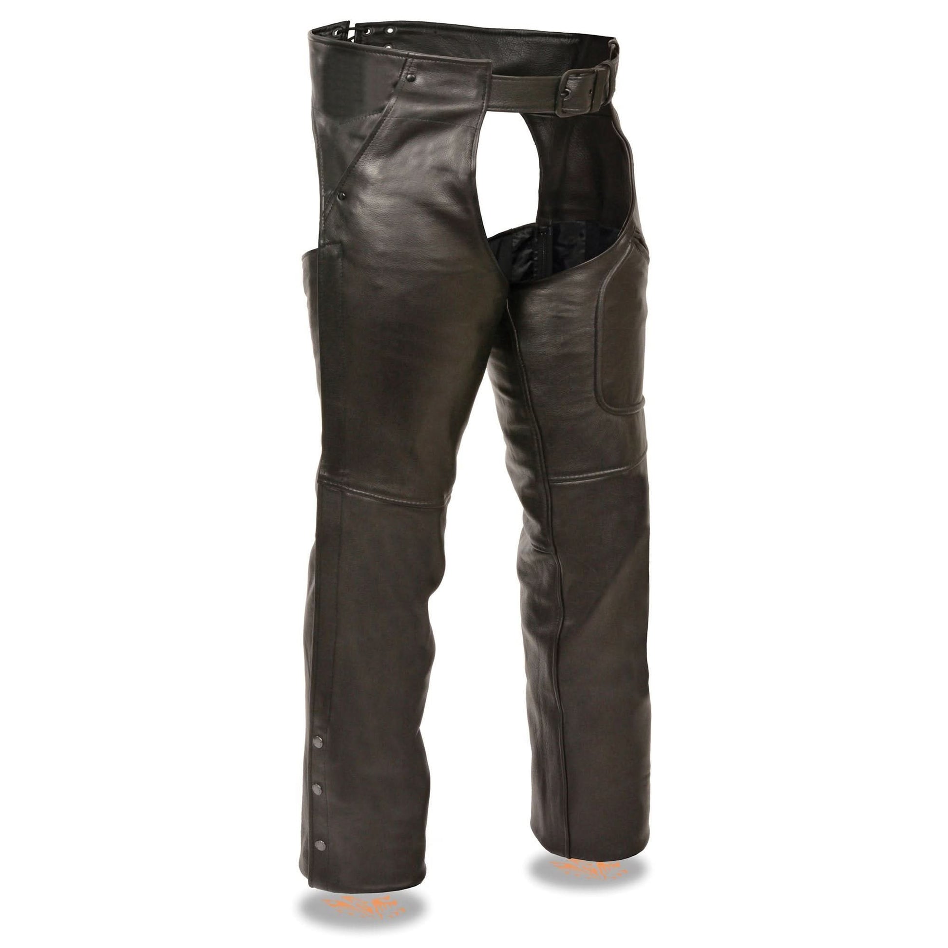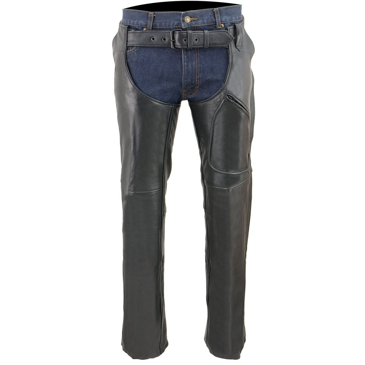 Milwaukee Leather Men’s Black Premium Leather Motorcycle Rider Chaps w/ Front 3-Pockets - Thigh Patch Pocket-SH1766
