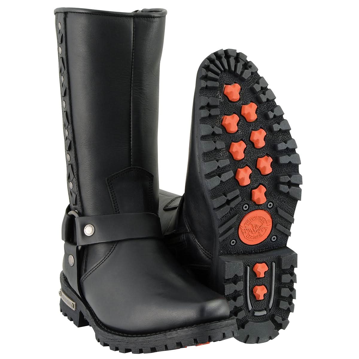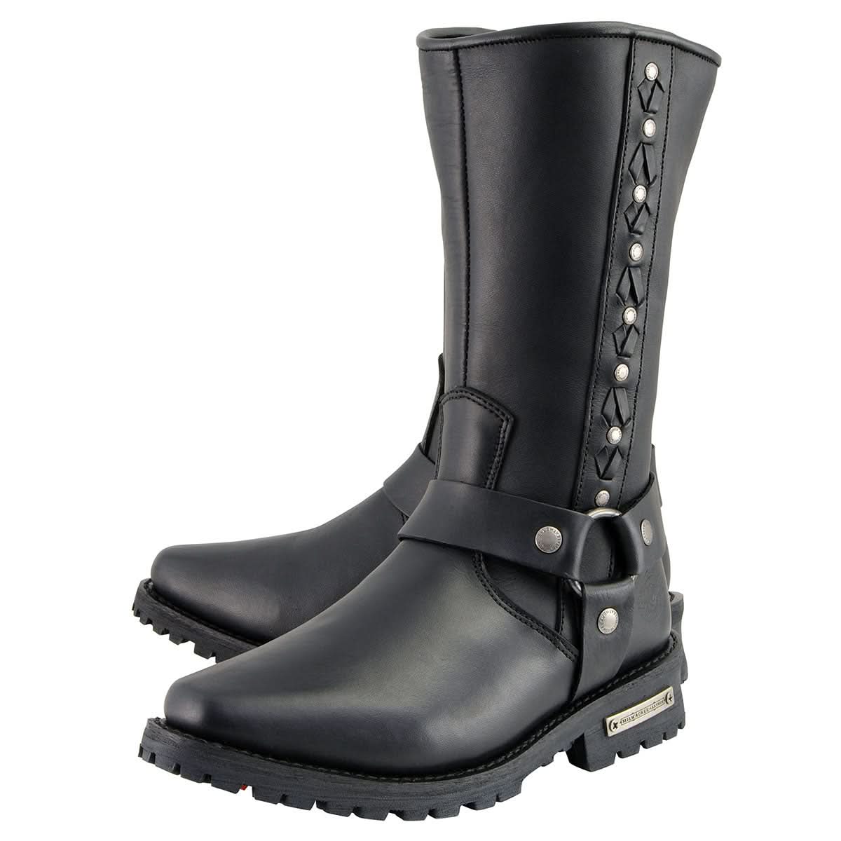 Milwaukee Leather Men's Black Leather Harness Motorcycle Boots with Braid and Riveted Details MBM9025