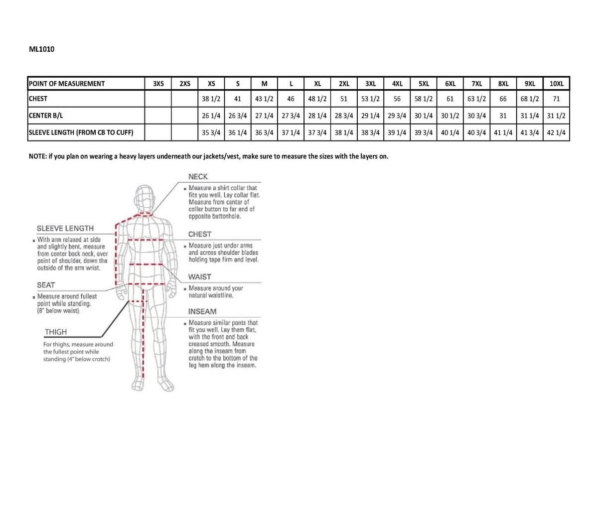- Full Sleeve Zip Out Thermal Liner
