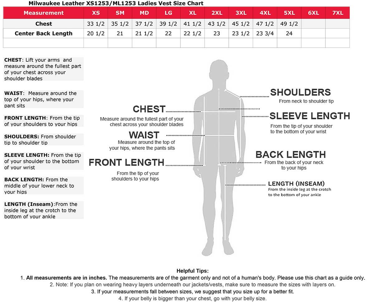 Milwaukee Leather ML1253 Women's Black Premium Leather Motorcycle Rider Vest w/ Snap Button Closure