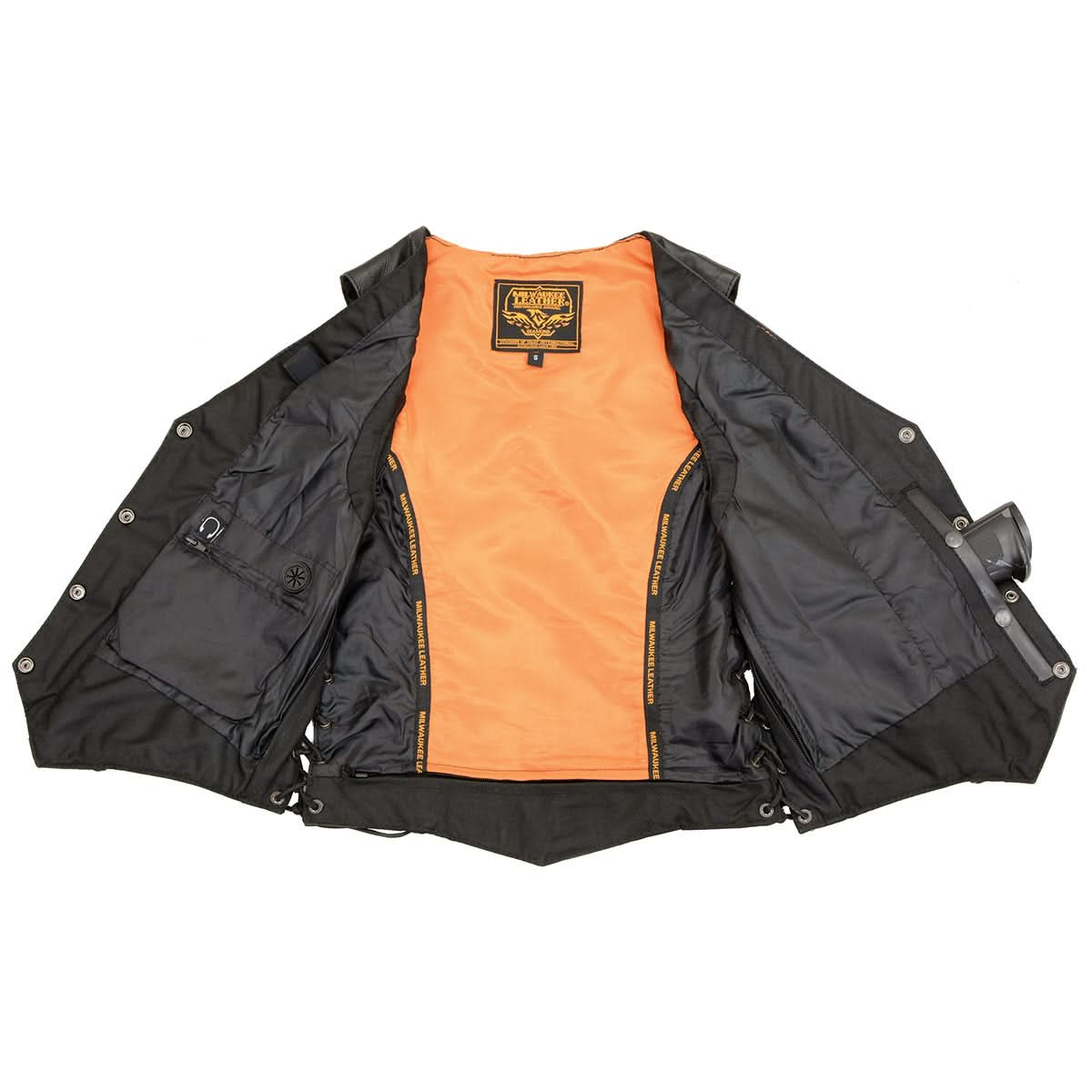 Milwaukee Leather ML1255 Women's Black Braided Motorcycle Leather Vest with Side Laces