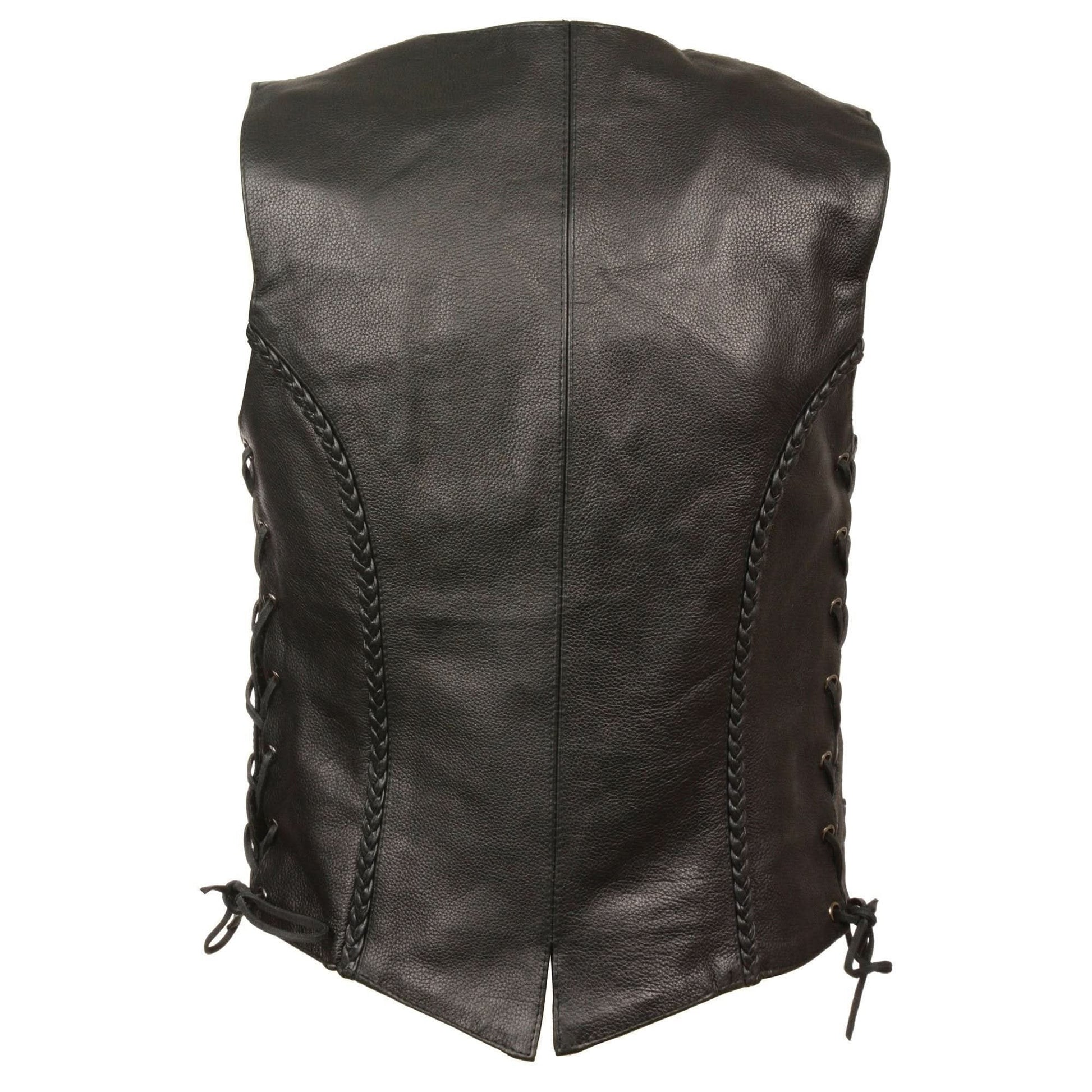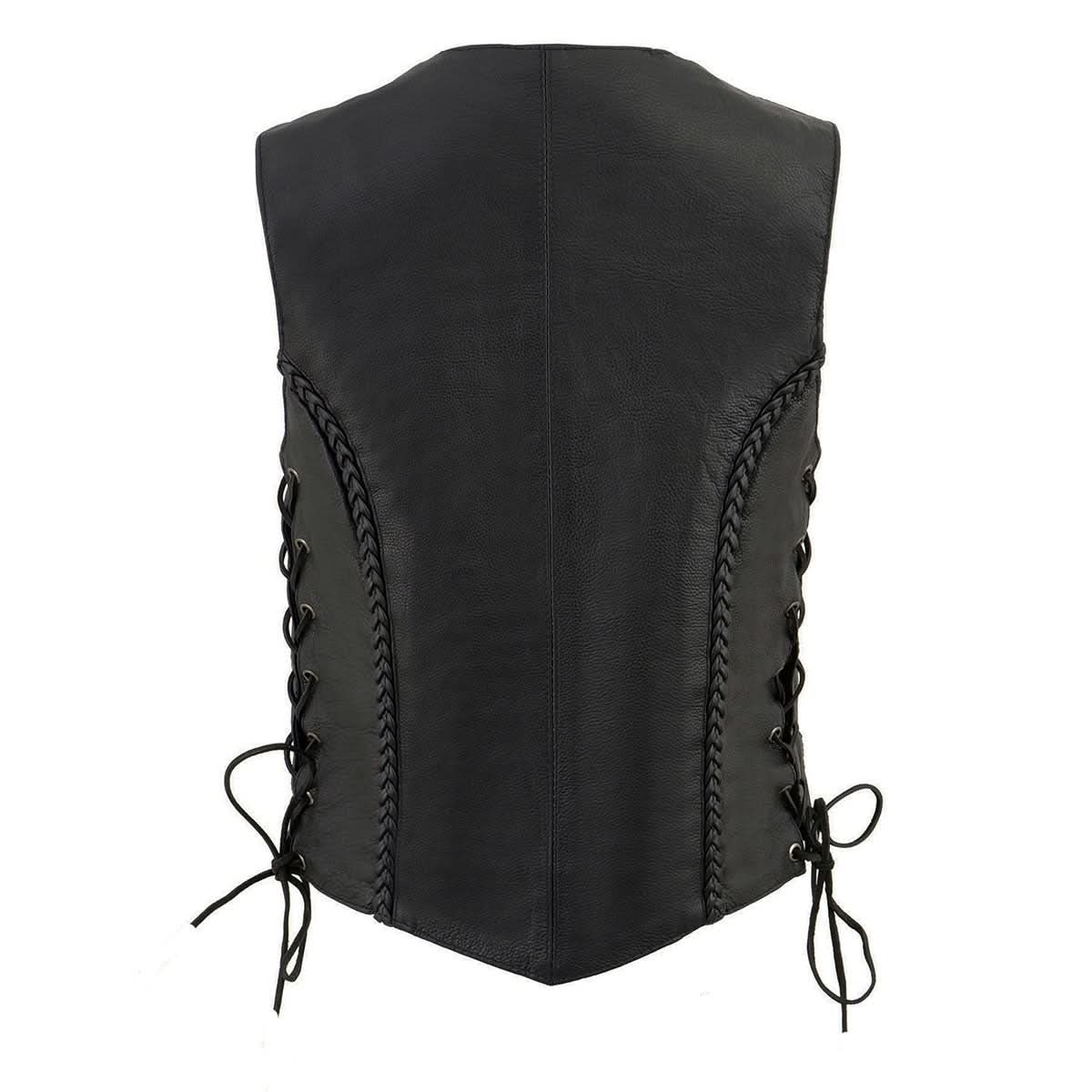 Milwaukee Leather ML1255 Women's Black Braided Premium Leather Side Lace Motorcycle Rider Vest
