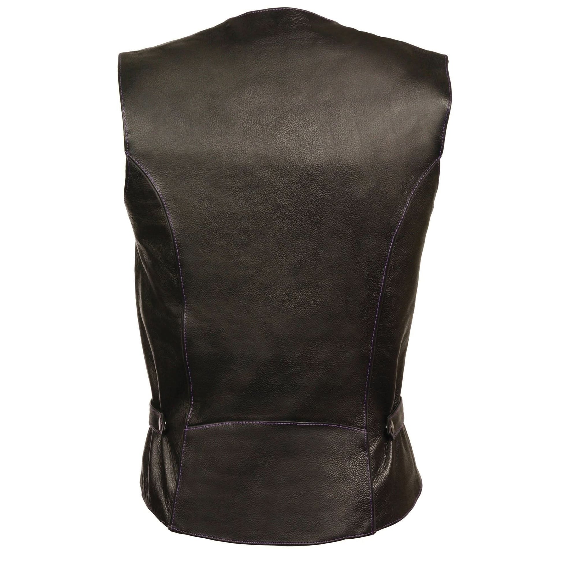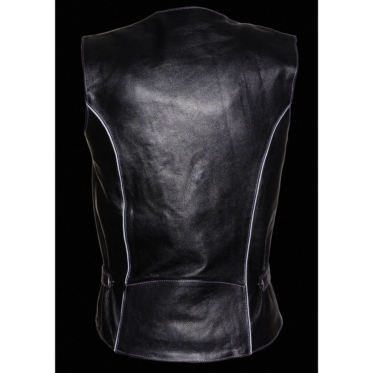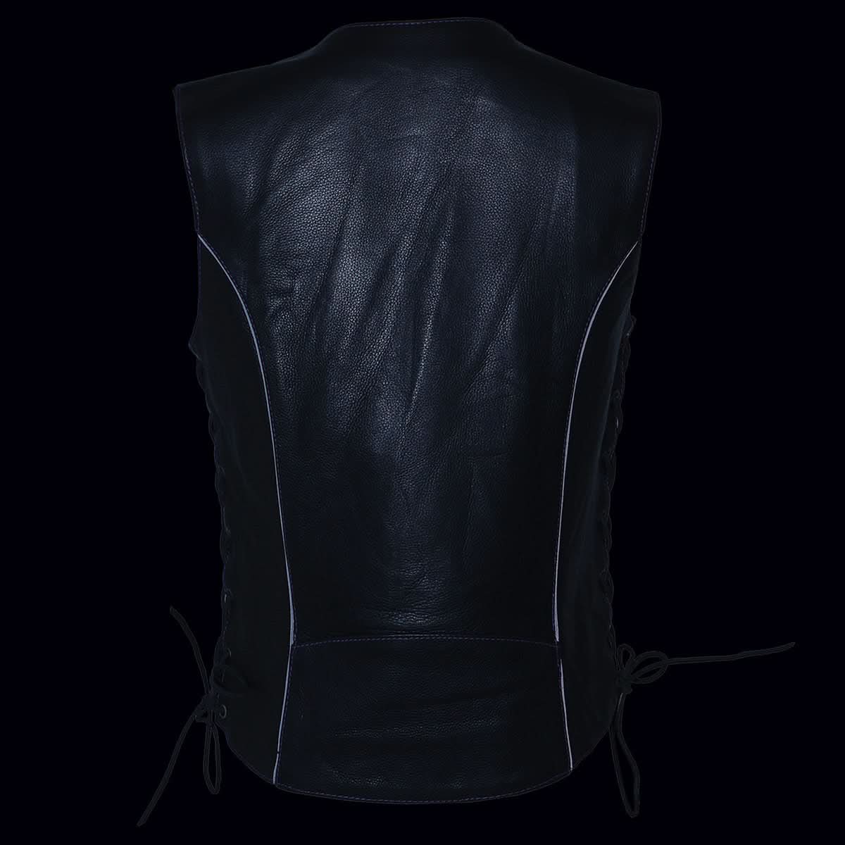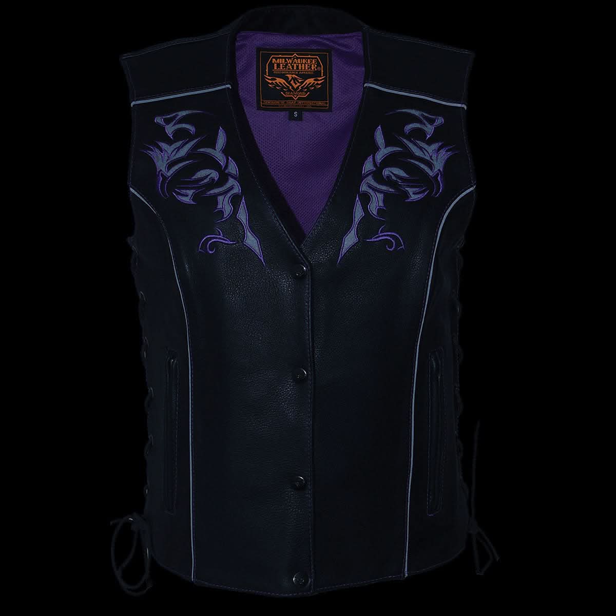 Milwaukee Leather ML1296 Women's Black/Purple Leather Side Laced Motorcycle Vest w/ Reflective Tribal