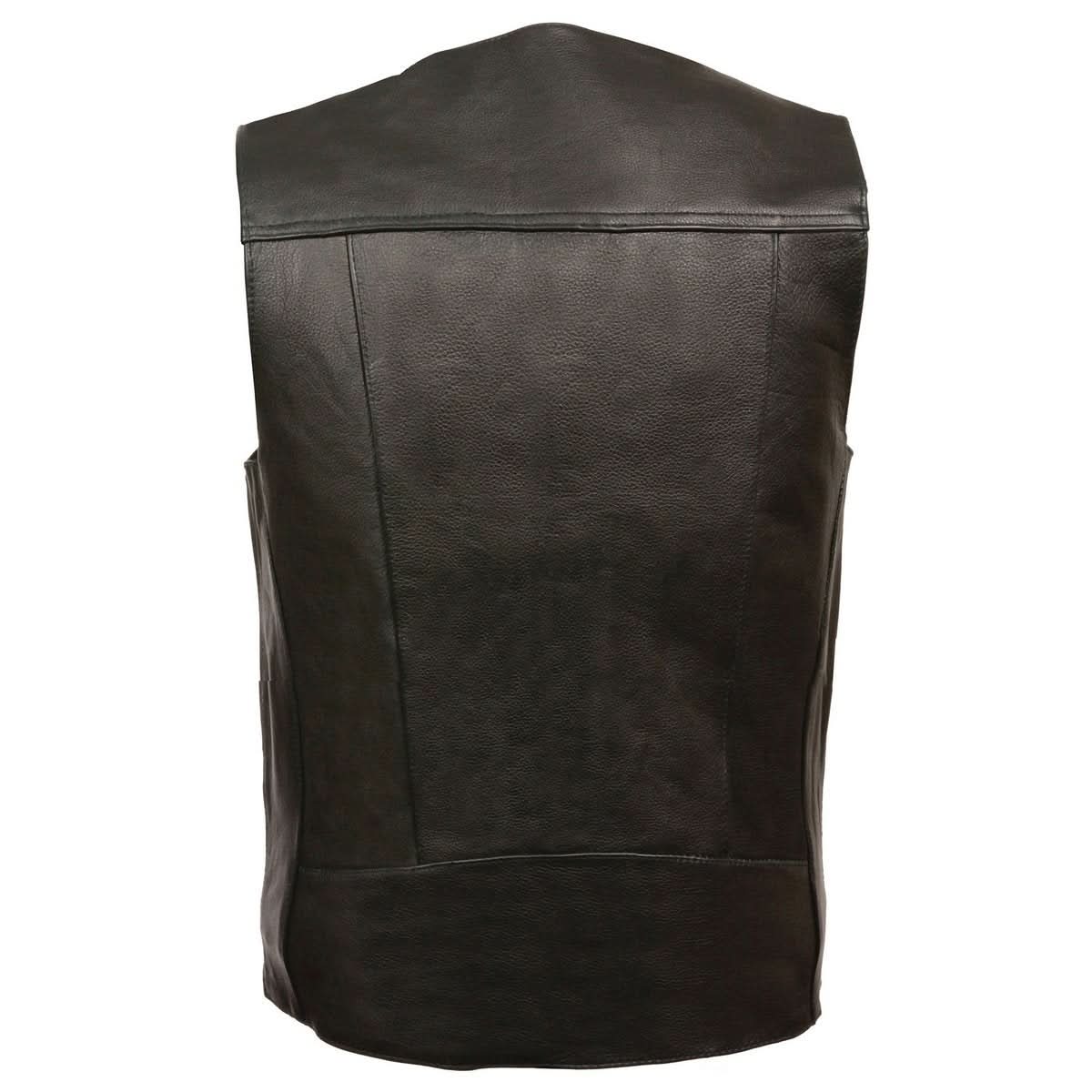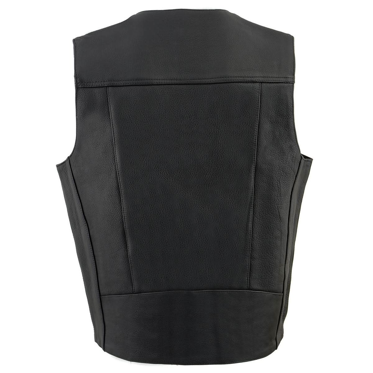 Milwaukee Leather ML1368 Men's Black Premium Leather V-Neck Motorcycle Rider Vest w/ Buffalo Nickel Snaps Closure