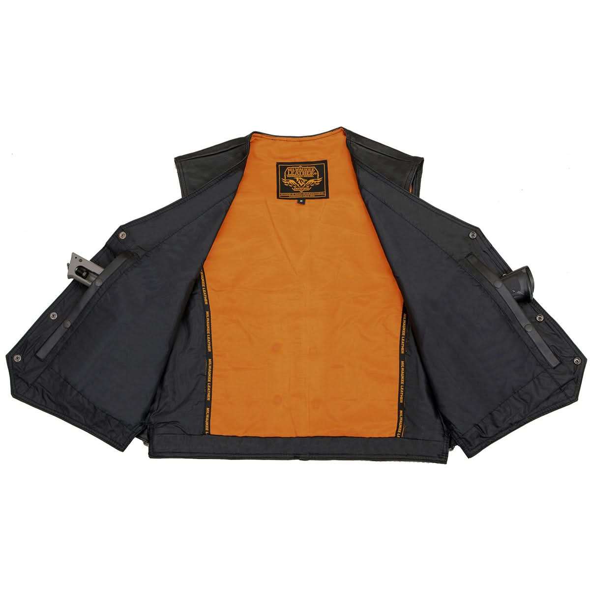 Milwaukee Leather ML1927 Men's Black Leather Vest with Gun Pockets and Side Buckles