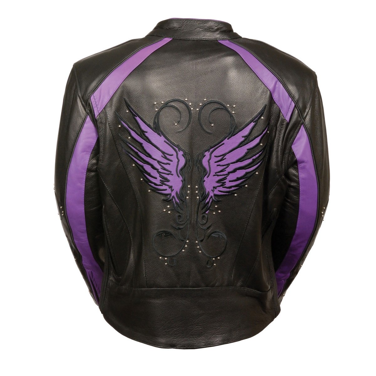 Milwaukee Leather ML1952 Women's Black and Purple Embroidered and Stud Design Scooter Jacket