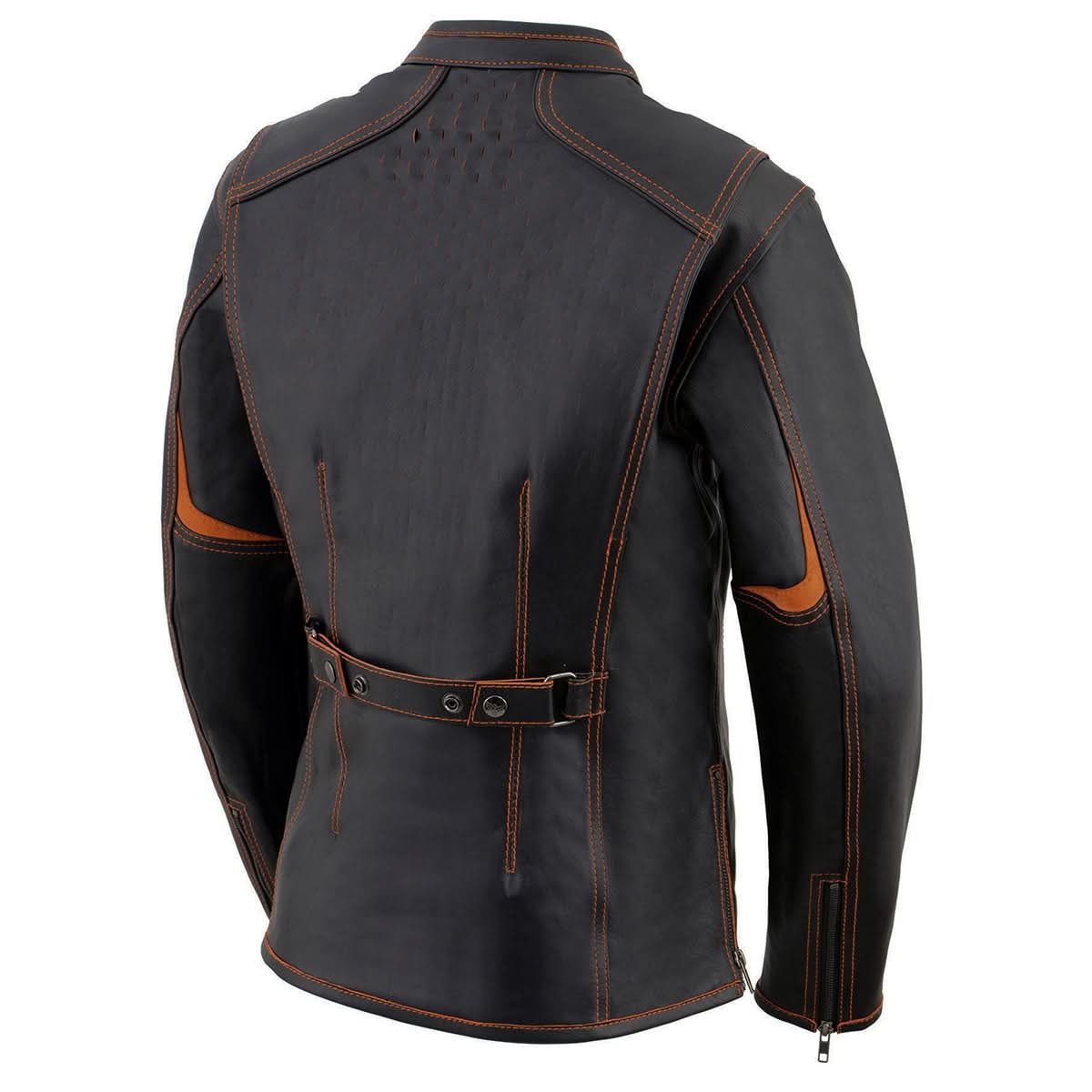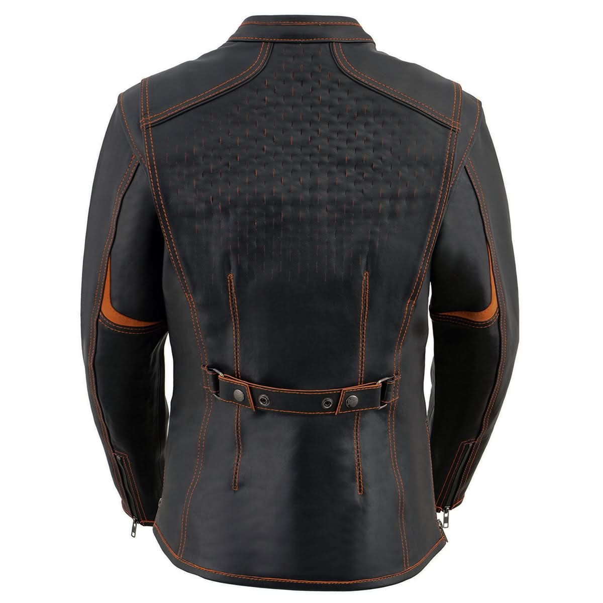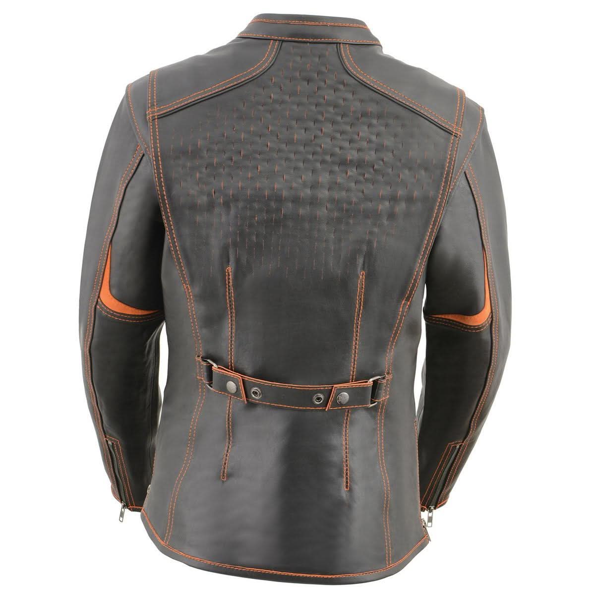 Milwaukee Leather MLL2502 Women's 'Laser Cut' Distressed Black and Orange Scuba Style Racer Jacket