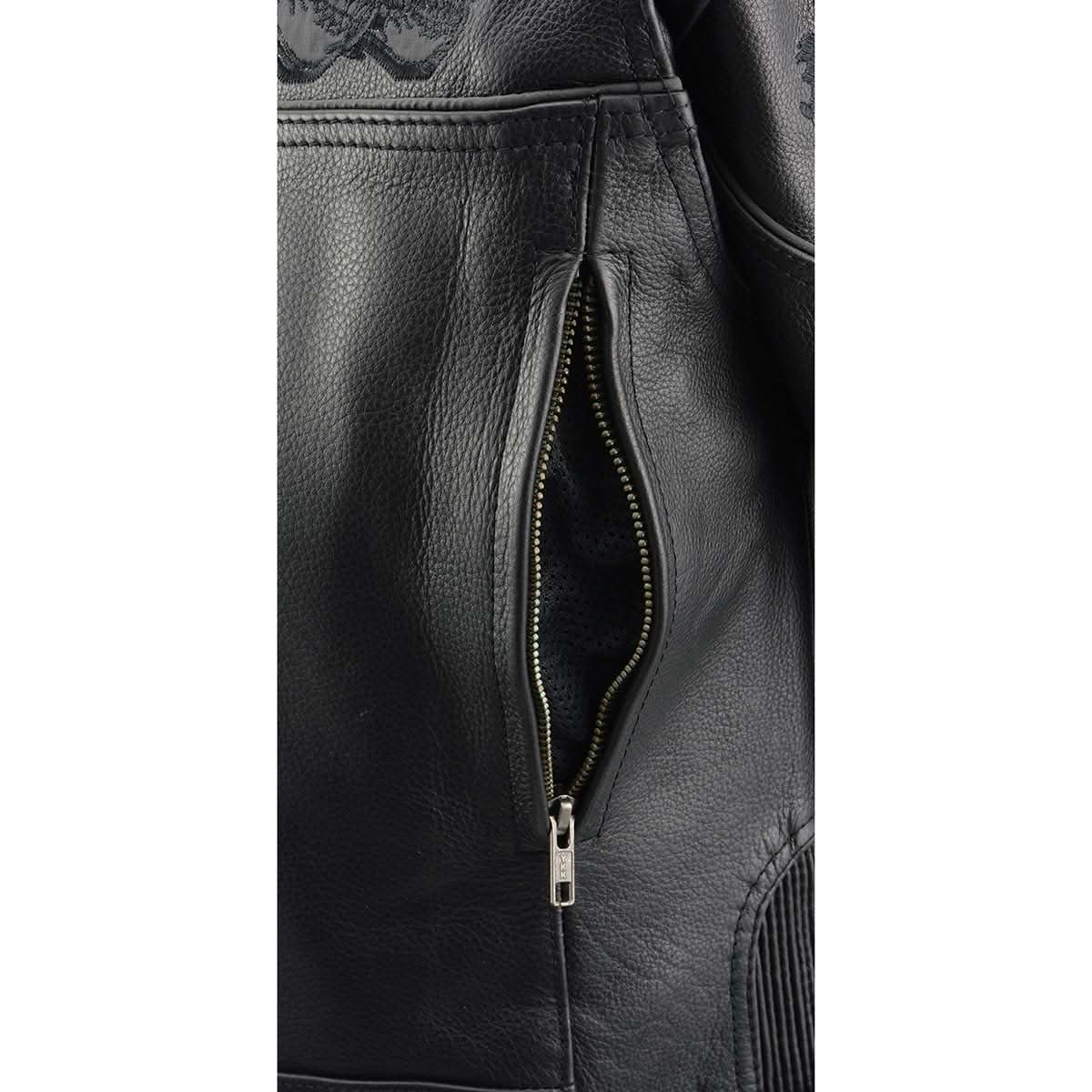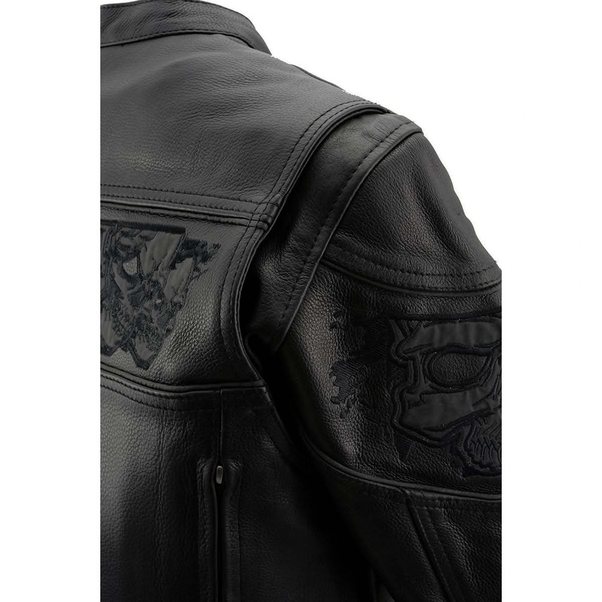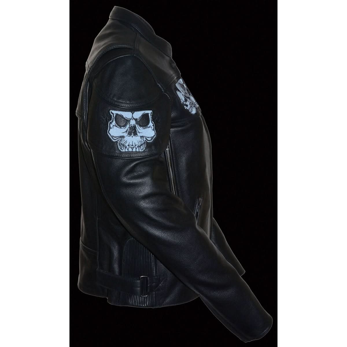 Milwaukee Leather MLL2540 Women's Crossover Black Leather Scooter Jacket w/ Reflective Skull Graphic