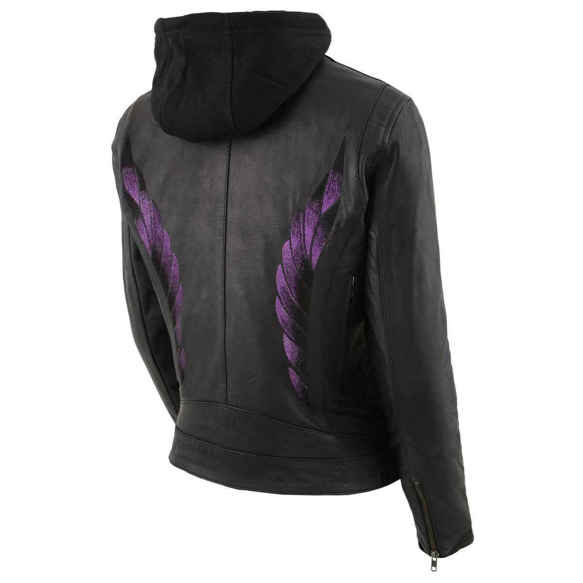Milwaukee Leather MLL2546 Women's Purple Winged ‘Scuba’ Leather Jacket with Hoodie