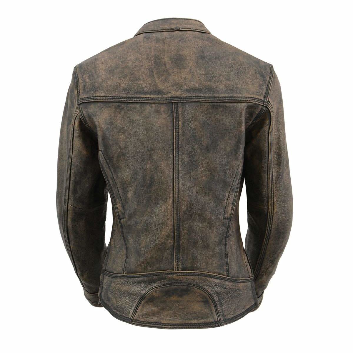 Milwaukee Leather MLL2550 Women's Scooter Distressed Brown Leather Vented Motorcycle Jacket