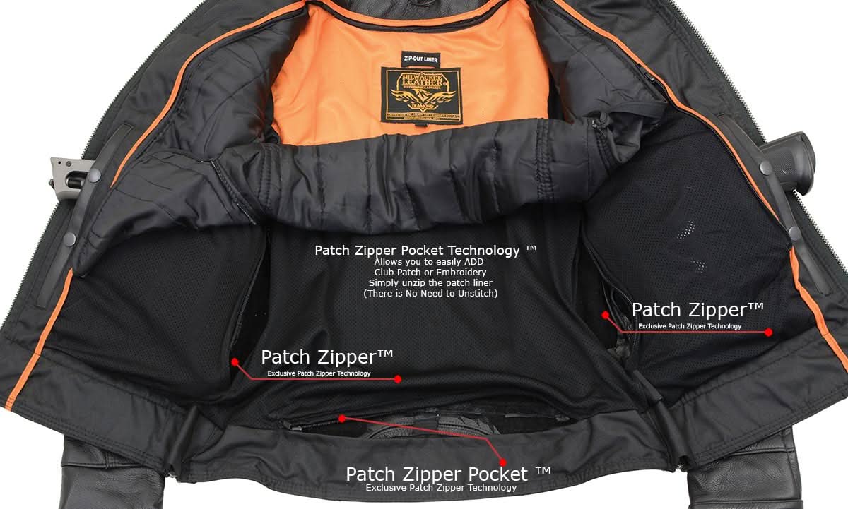- Patented Patch Access Technology: Inside ‘Patch Access’ Zipper Openings Allow Easier Patches or Embroidery Sewing without Having to Open the Jacket