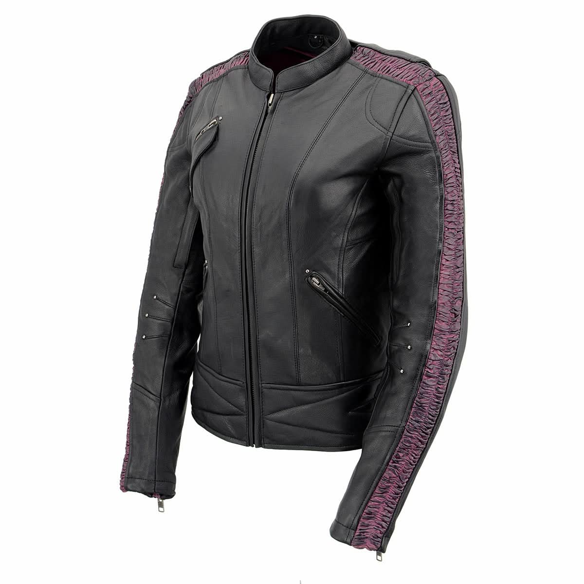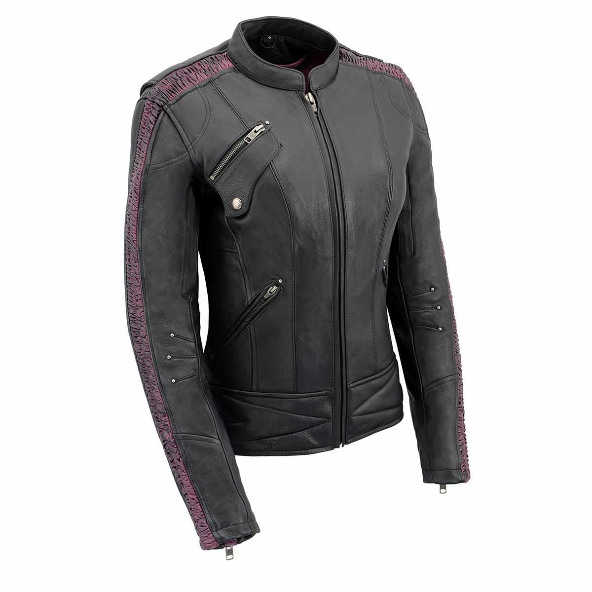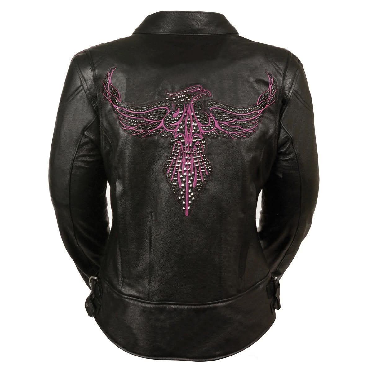 Milwaukee Leather MLL2570 Women's 'Phoenix Embroidered' Black and Fuchsia Pink Leather Motorcycle Jacket