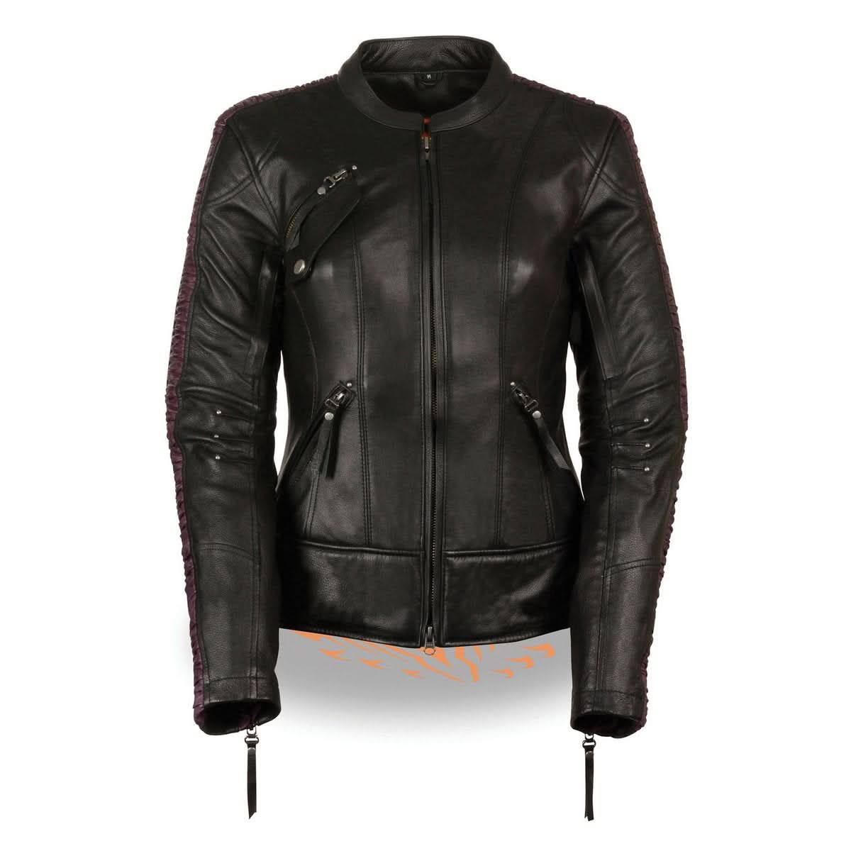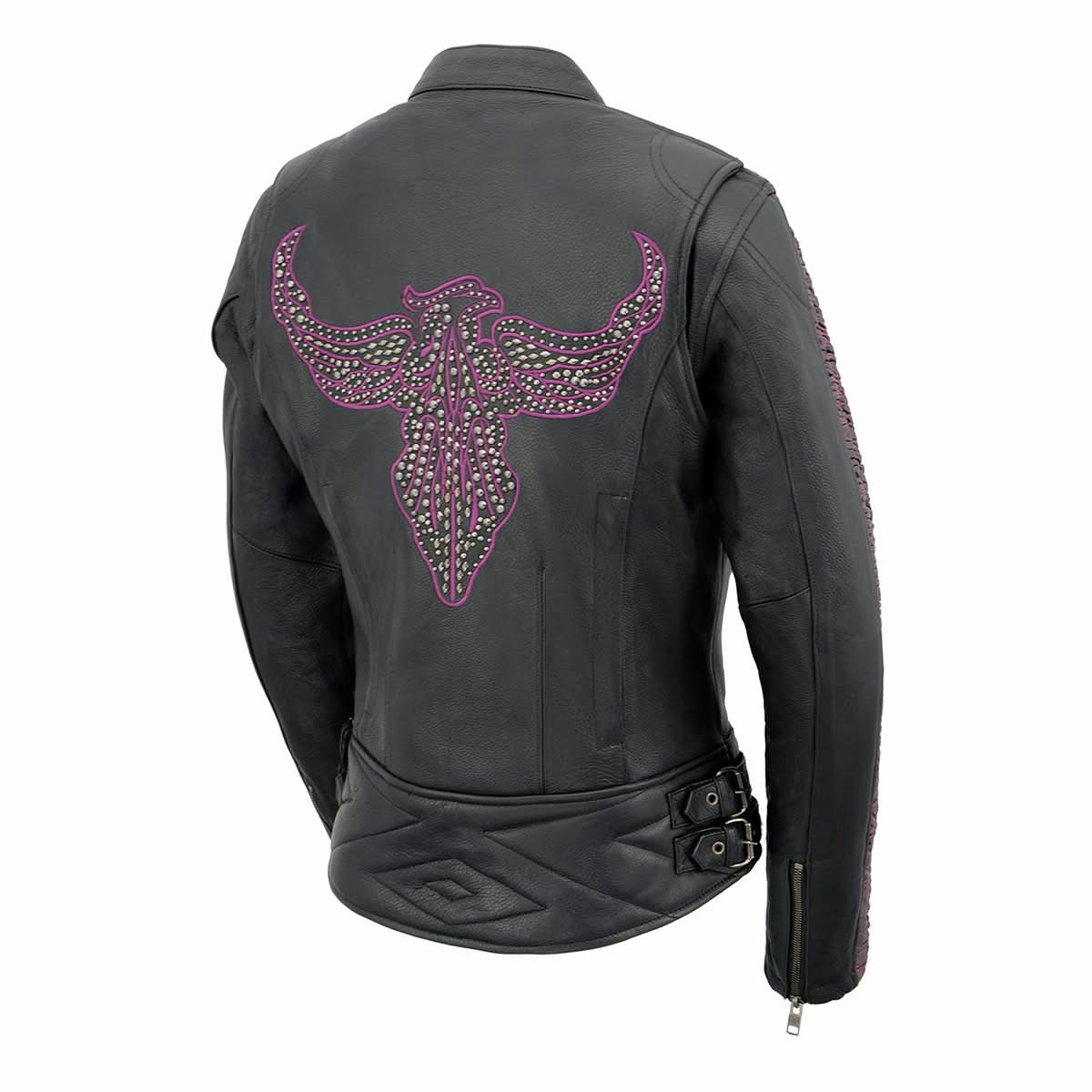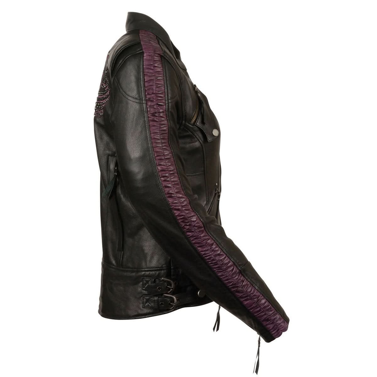 Milwaukee Leather MLL2570 Women's 'Phoenix Embroidered' Black and Purple Motorcycle Leather Jacket