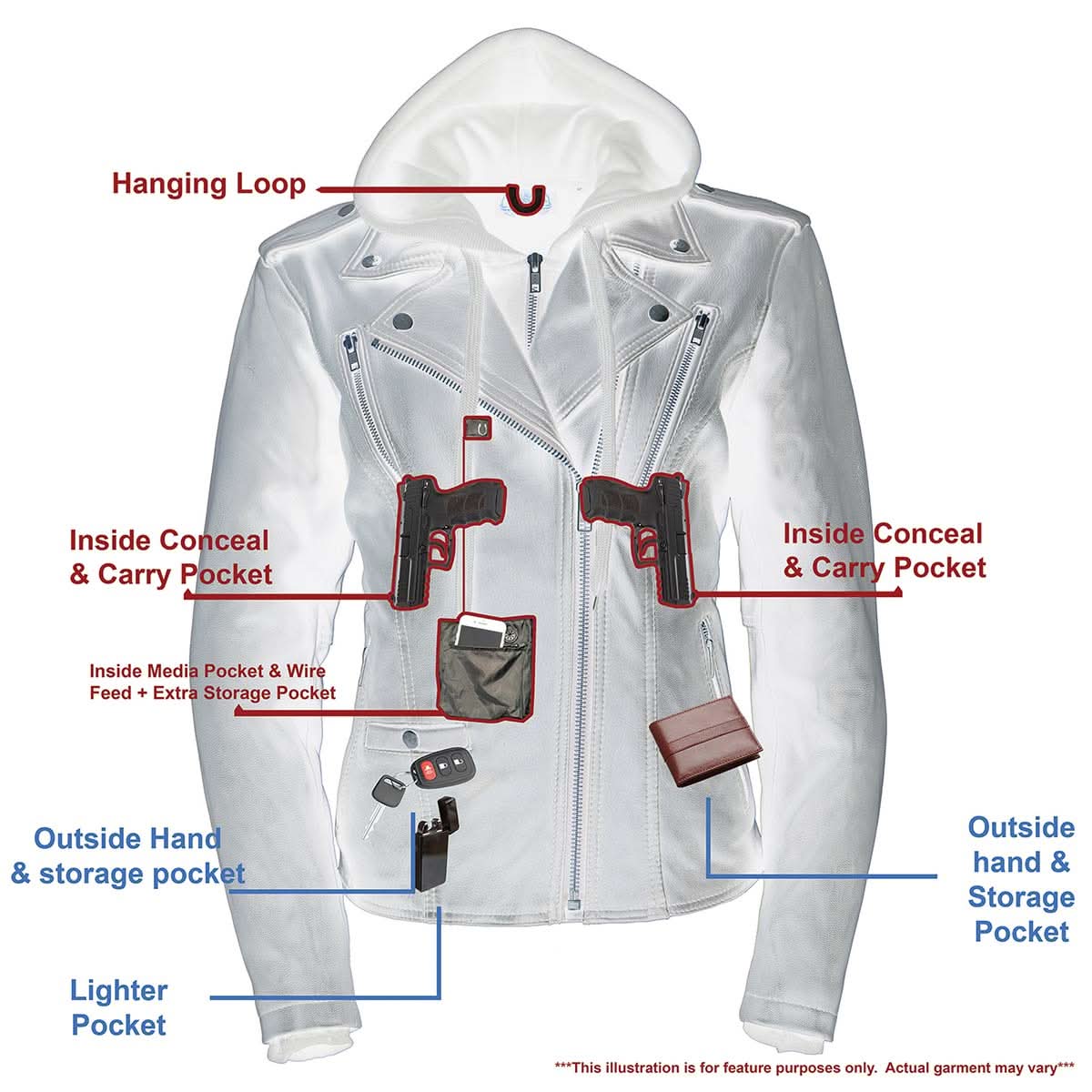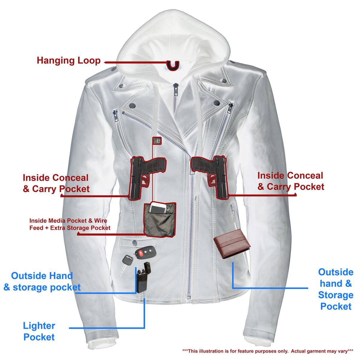 - Conceal Your Piece with Dual Inside Left and Right Gun/Ammo Pockets (Can Be Used as Regular Large Storage Pockets If You Don’t Carry)