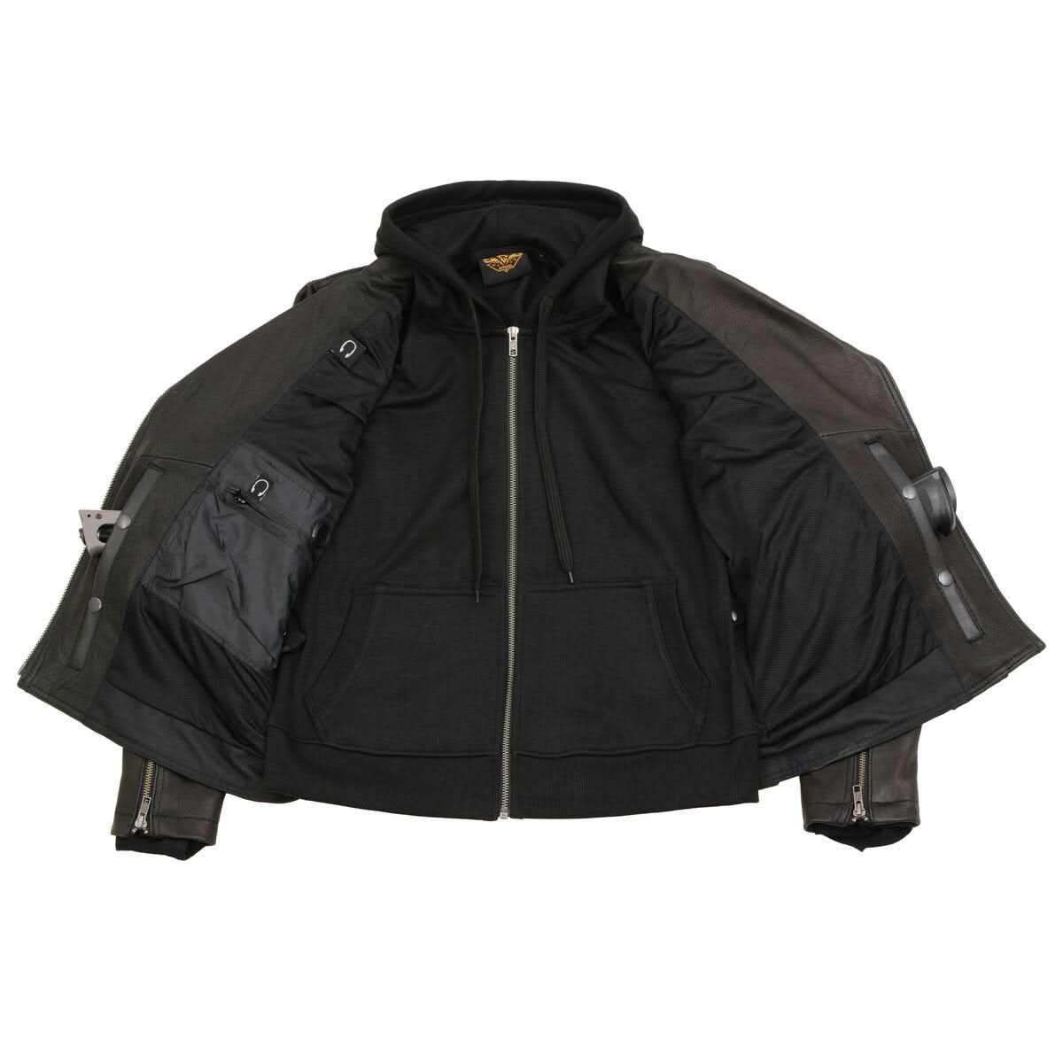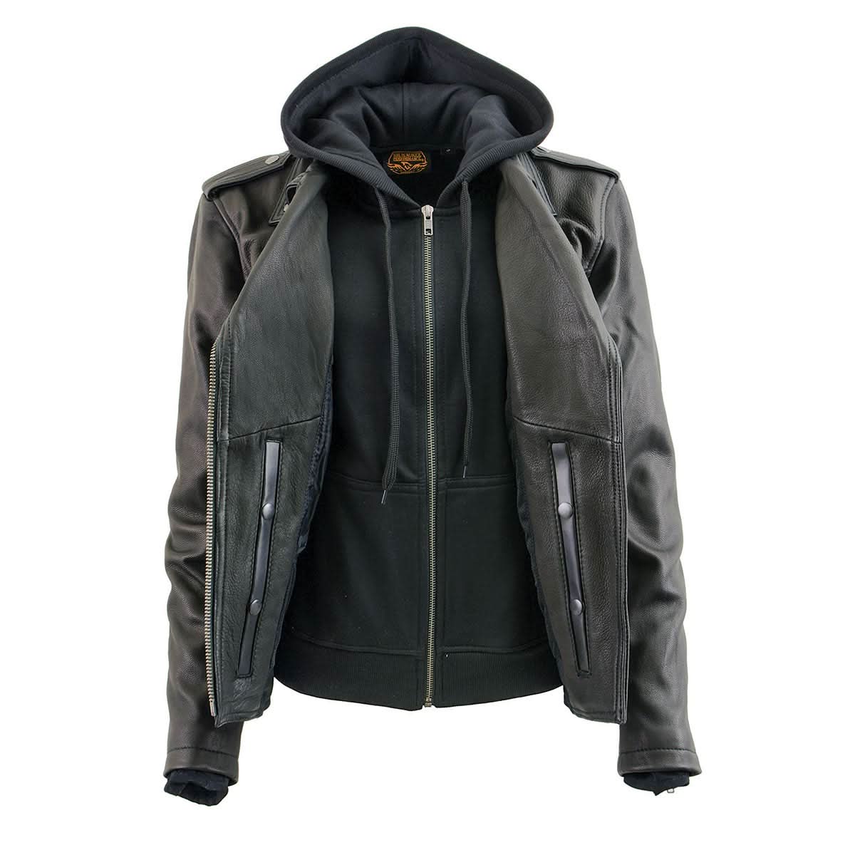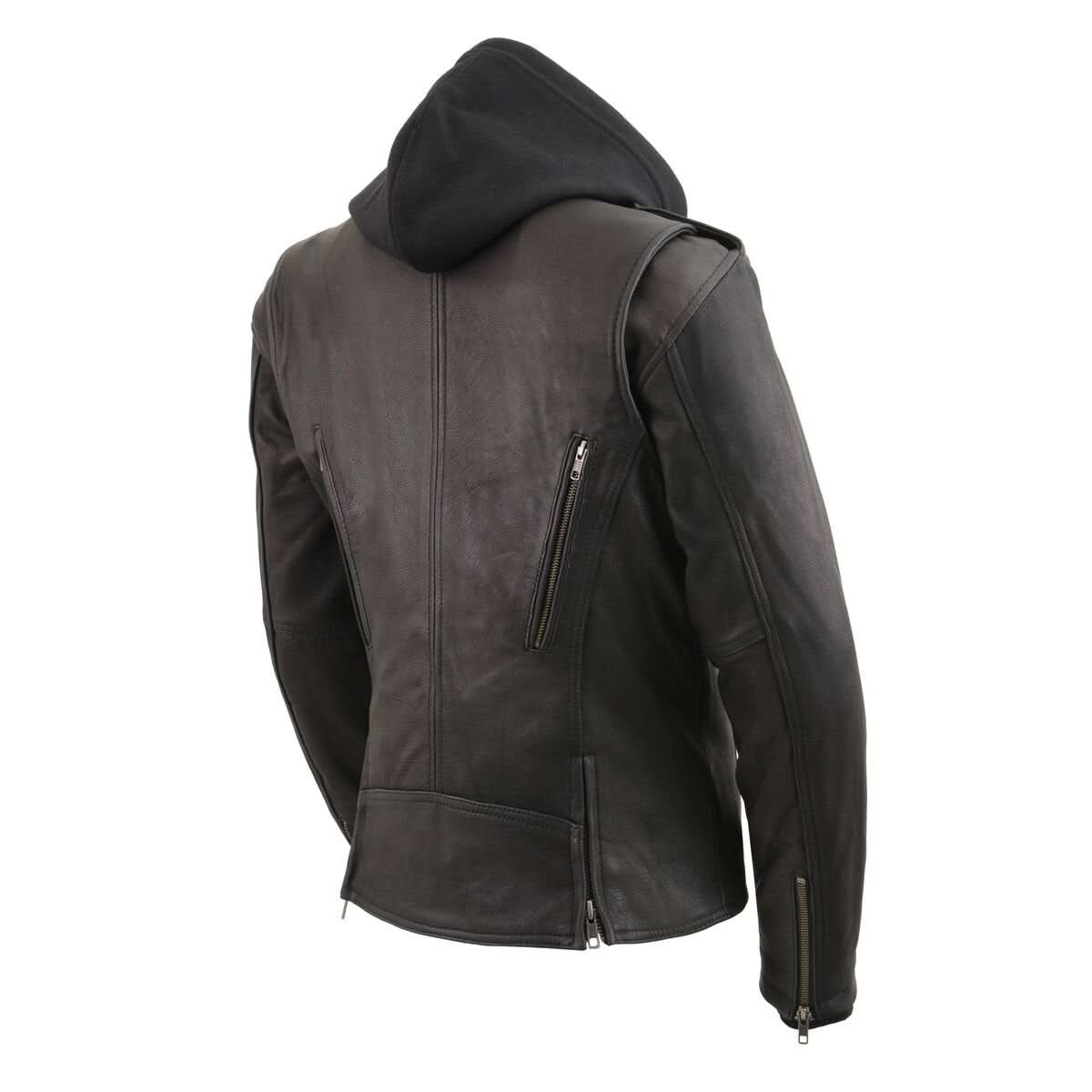 Milwaukee Leather MLL2575 Women's Black Leather Vented MC Jacket with Removable Hoodie