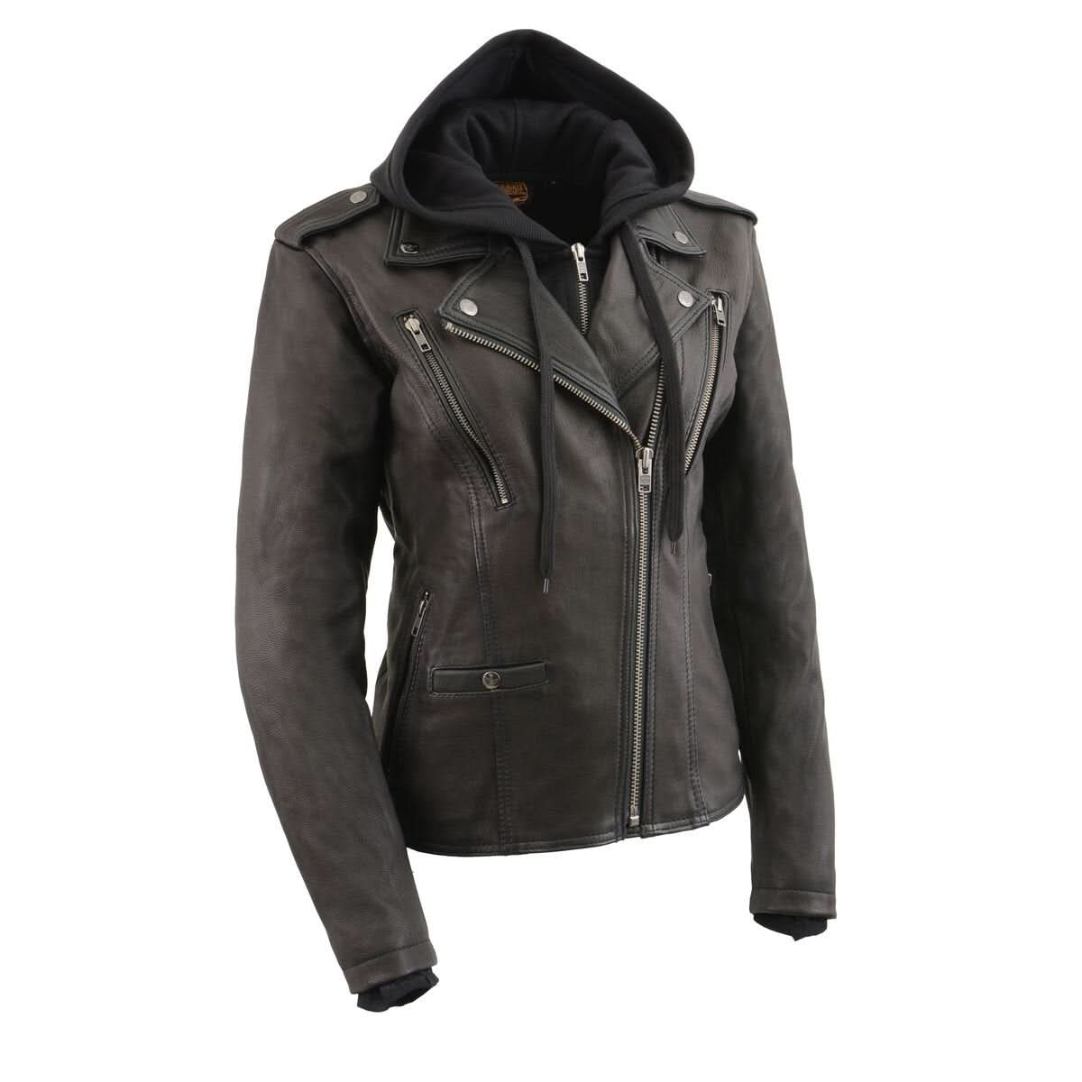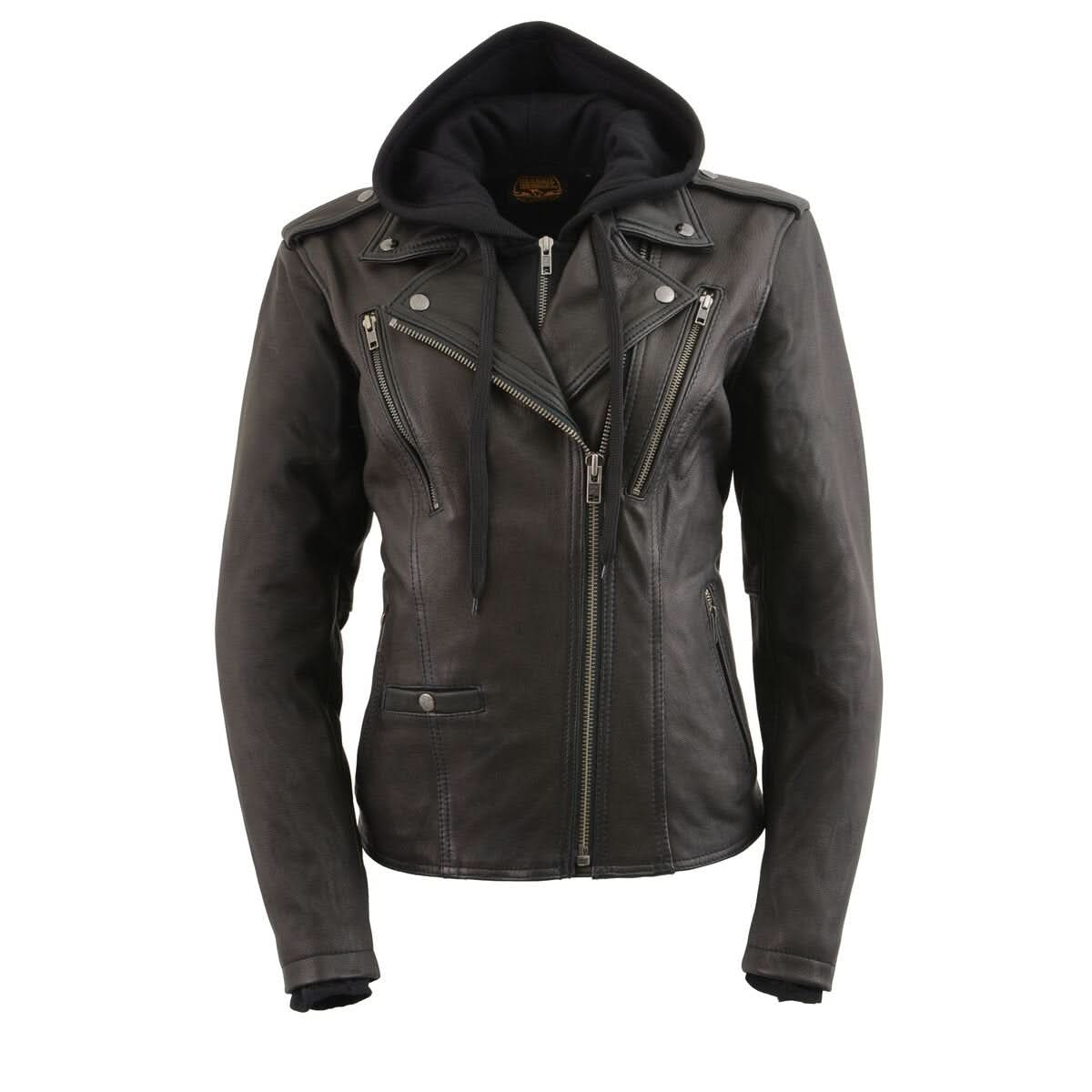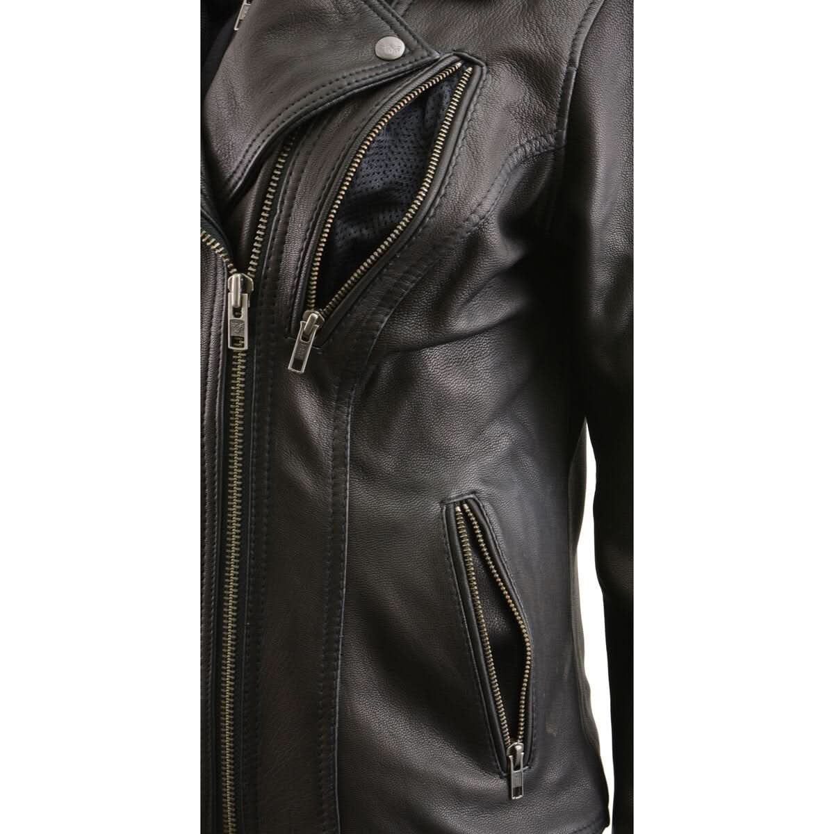 Milwaukee Leather MLL2575 Women's Black Leather Vented Motorcycle Jacket w/ Removable Hoodie