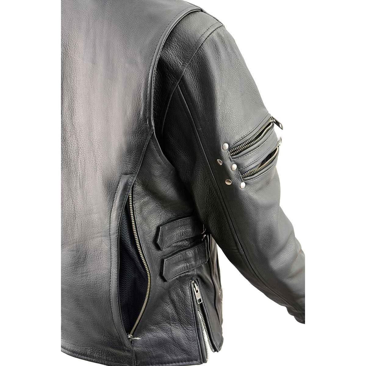 Rock a clean-cut look on crisp, cool days with this genuine leather motorcycle jacket from Milwaukee Leather. With sleek metal hardware and zippered hand pockets, it has a streamlined look that always works. Throw on with leather jeans and boots to finish off the ensemble. Order yours today from LeatherUp, the most popular online motorcycle store.