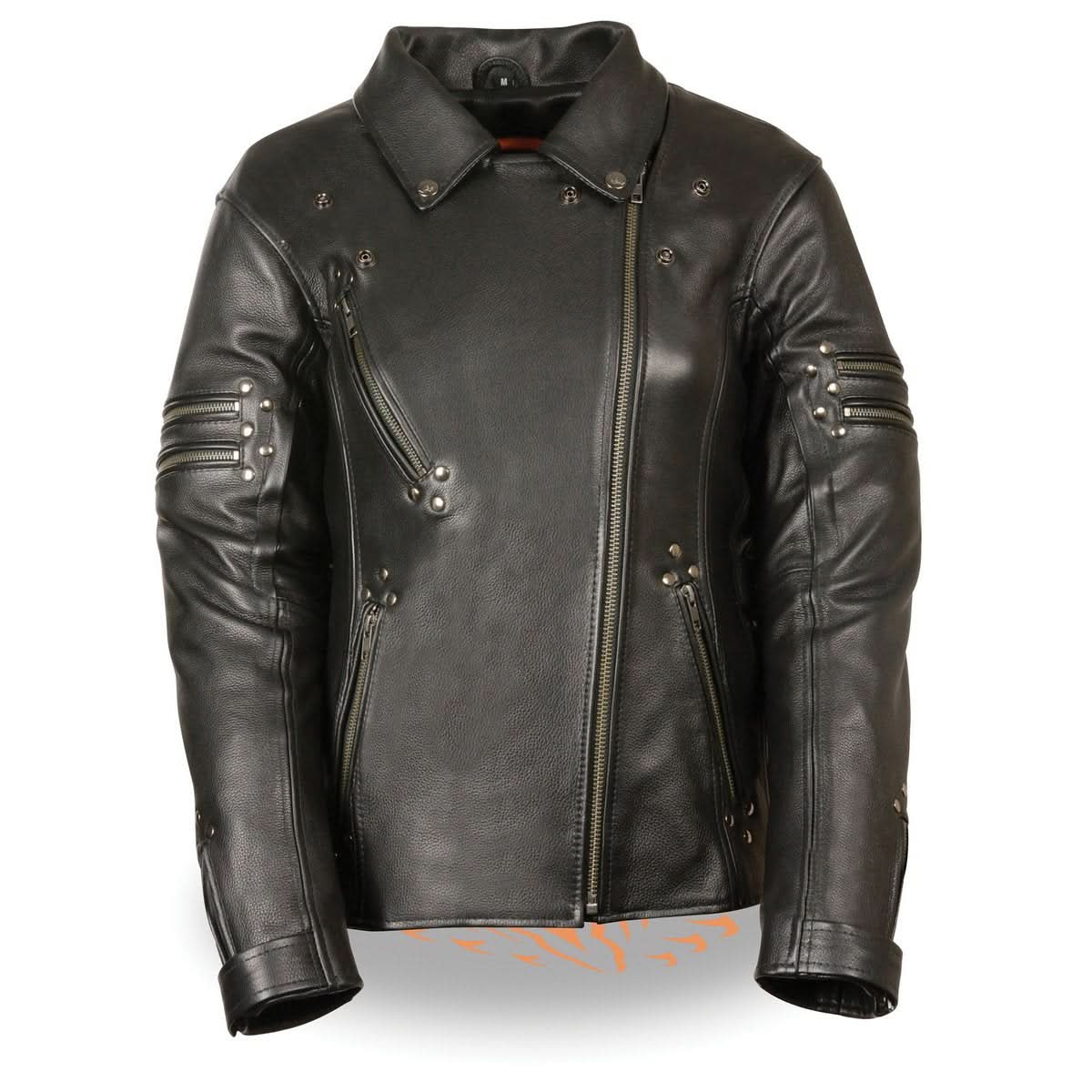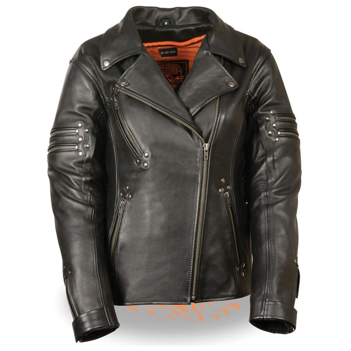 Milwaukee Leather MLL2585 Women's Black Premium Leather Motorcycle Rider Jacket with Rivets