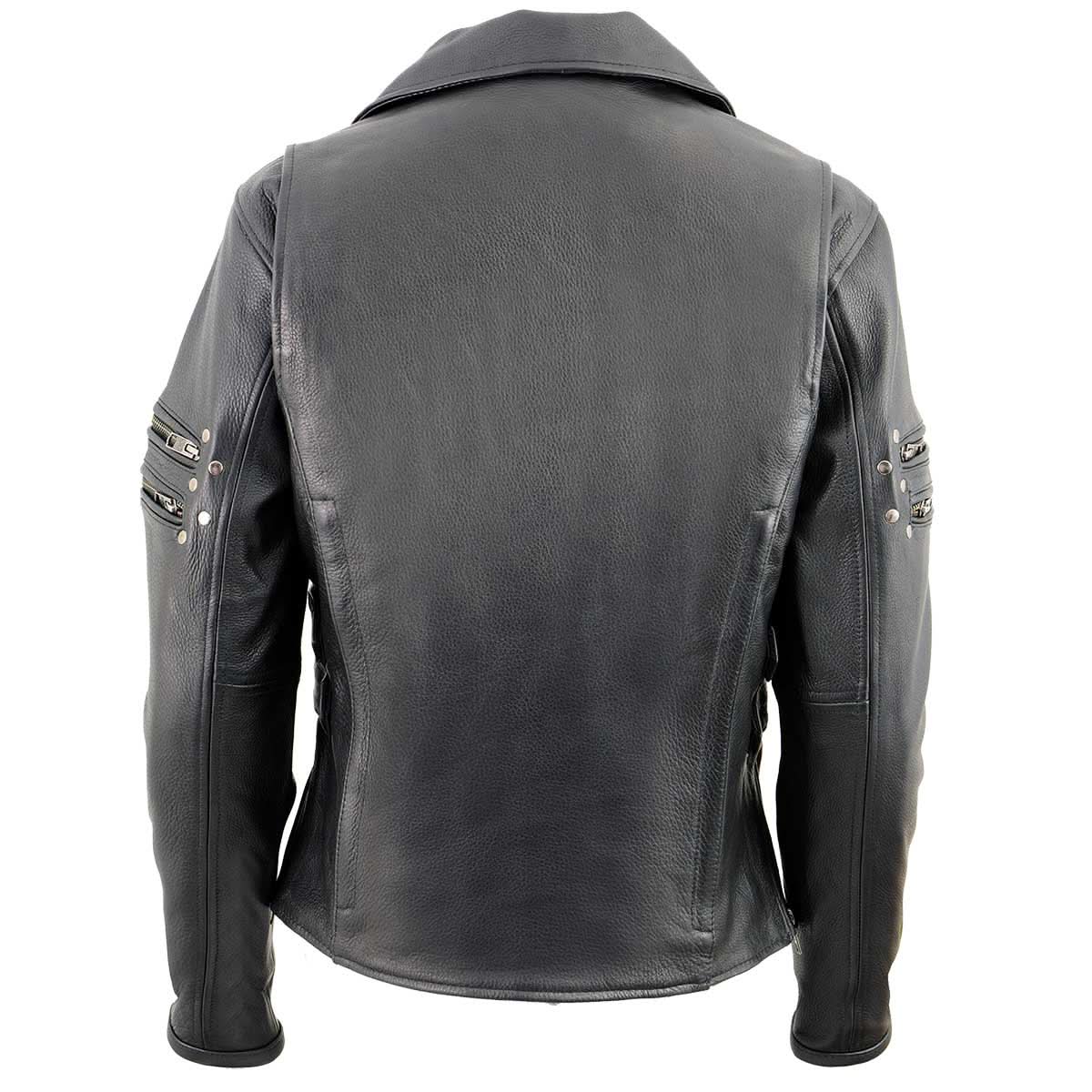 Milwaukee Leather MLL2585 Women's Fitted Beltless Black Leather Motorcycle Jacket with Rivet Detailing and Gun Pockets