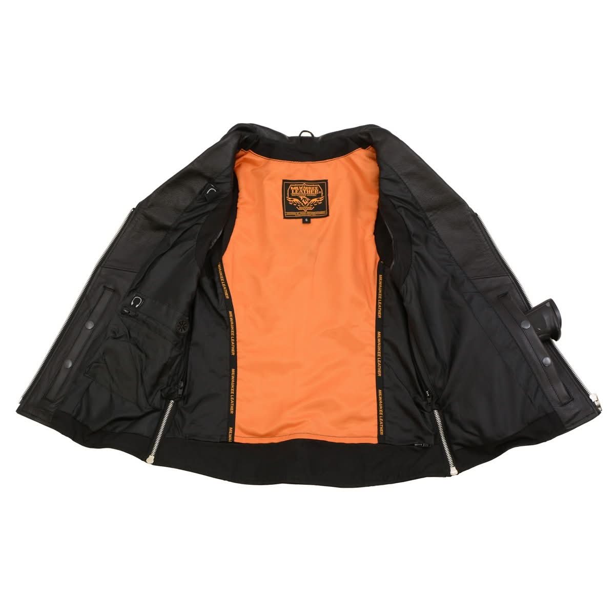 Milwaukee Leather MLL4503 Women's Black V-Neck Leather Classic Motorcycle Rider Vest w/ Riveted Lapel Collar