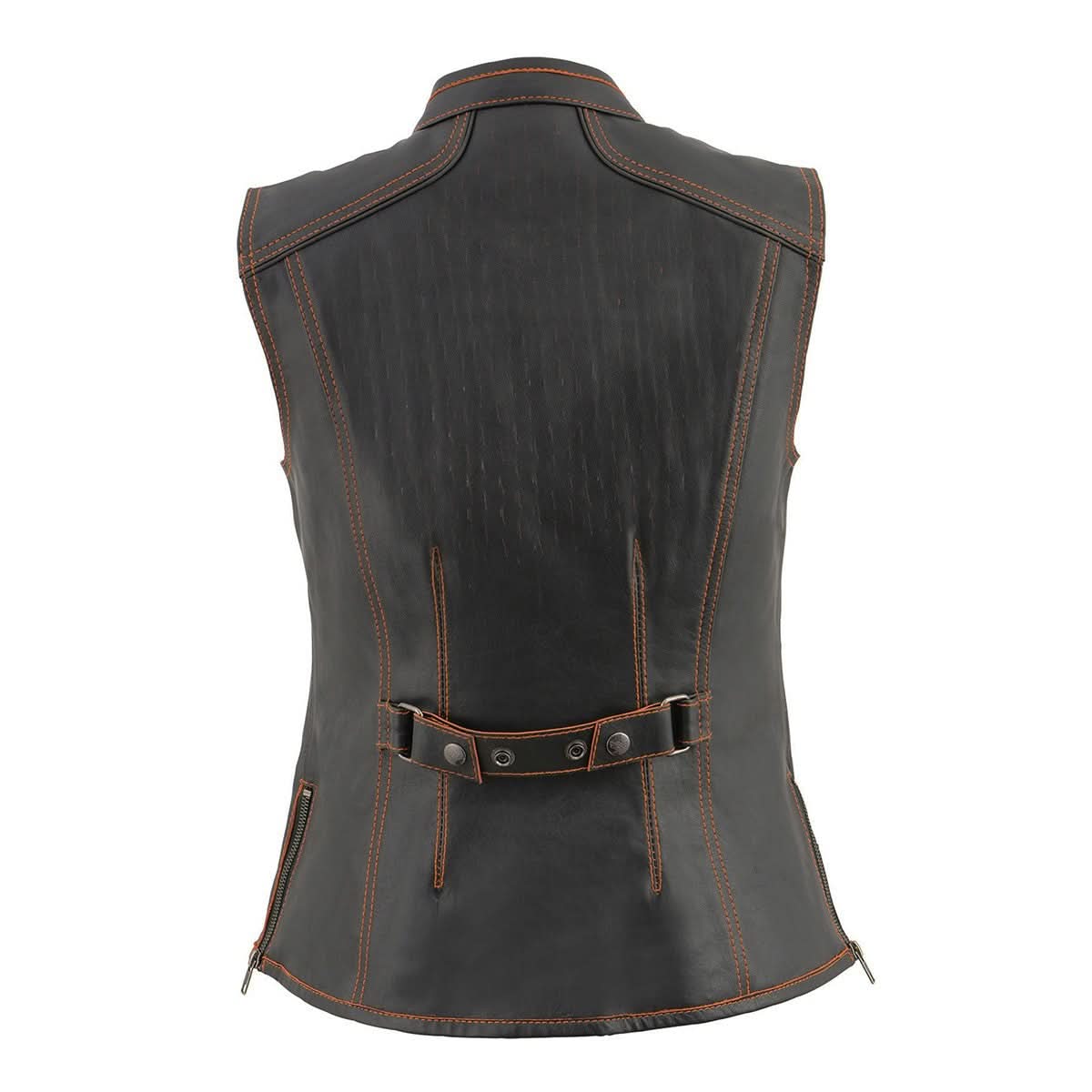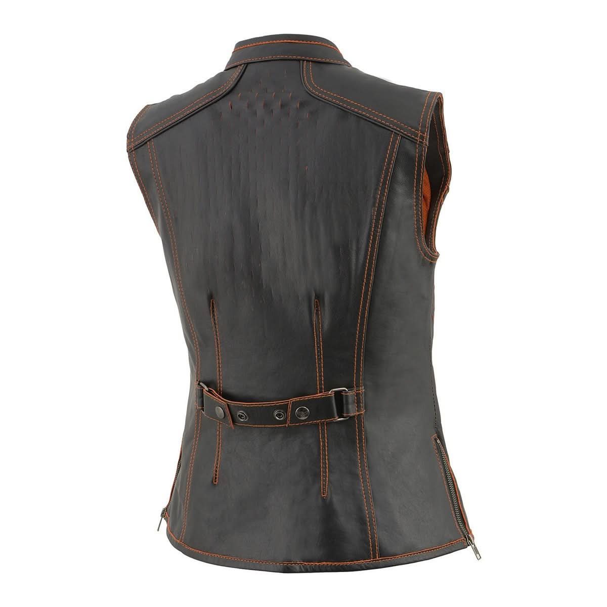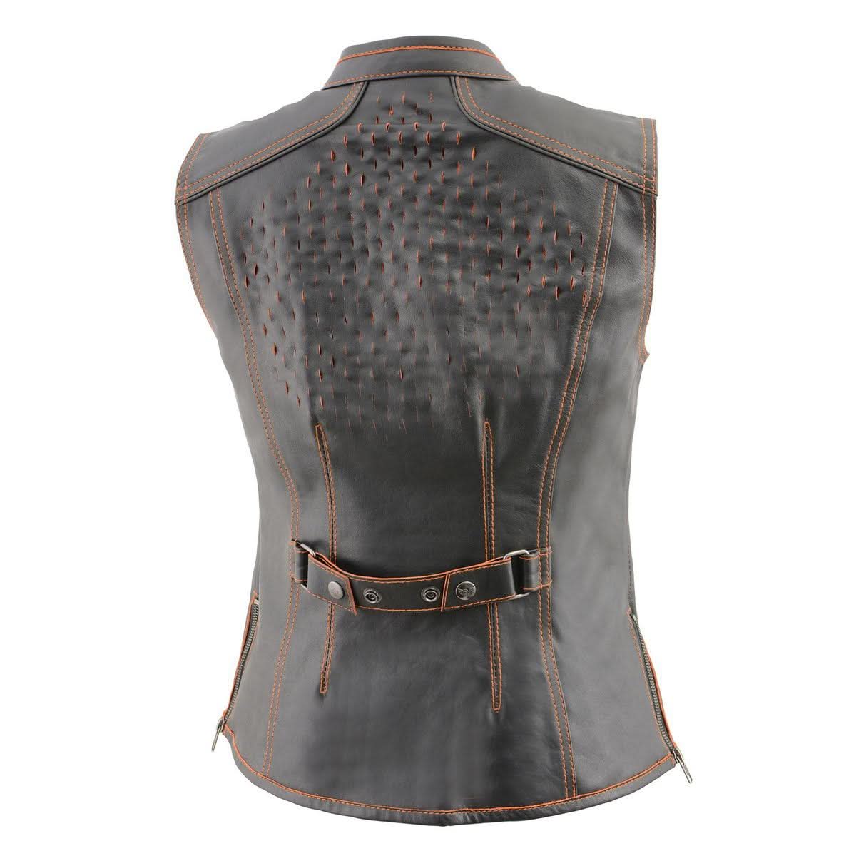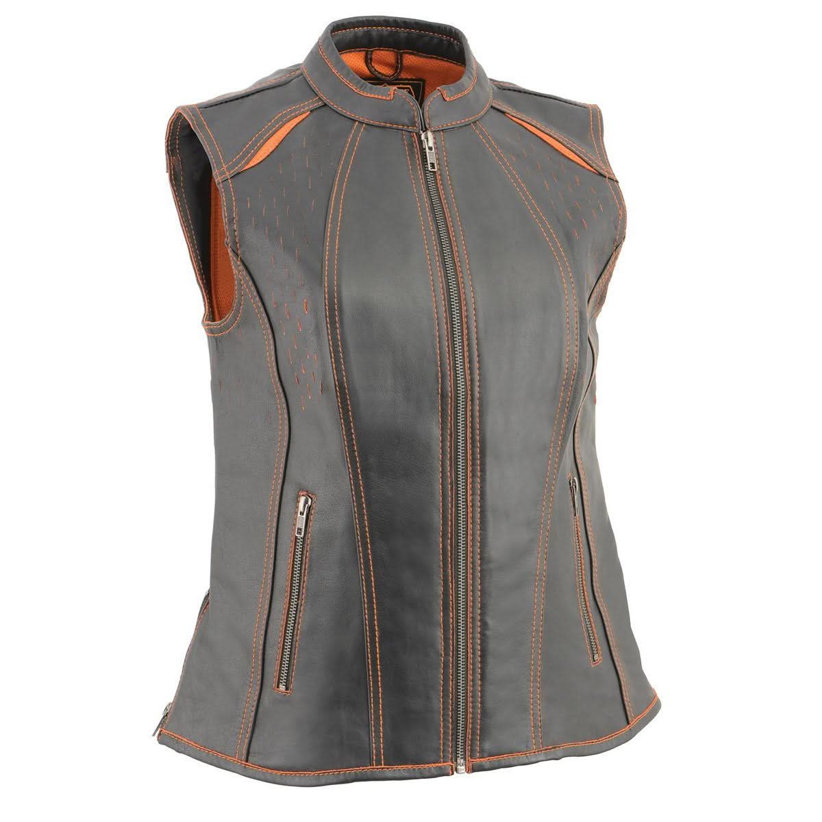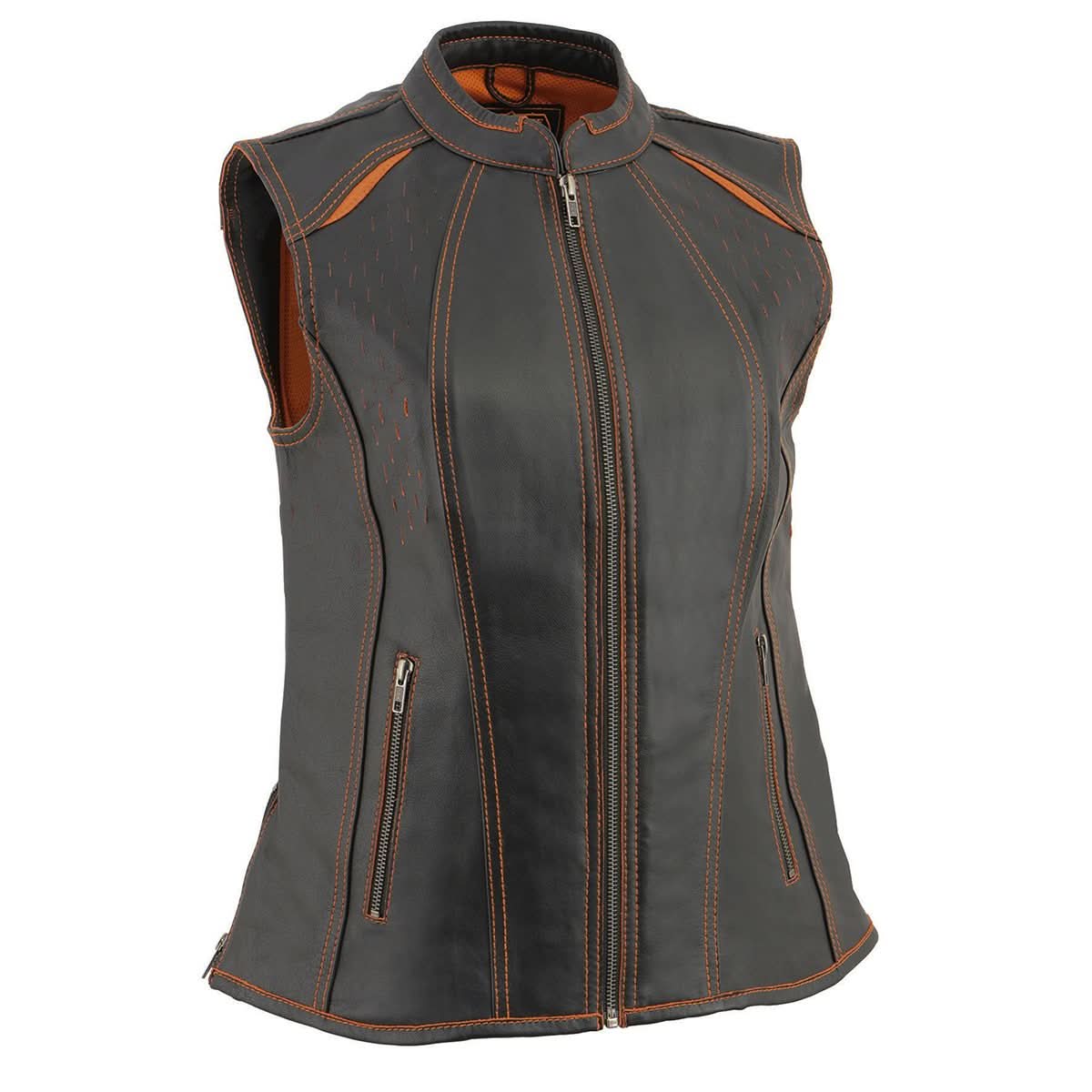 Milwaukee Leather MLL4507 Women's Black Leather Orange Accented Laser Cut Vented Scuba Style Motorcycle Rider Vest
