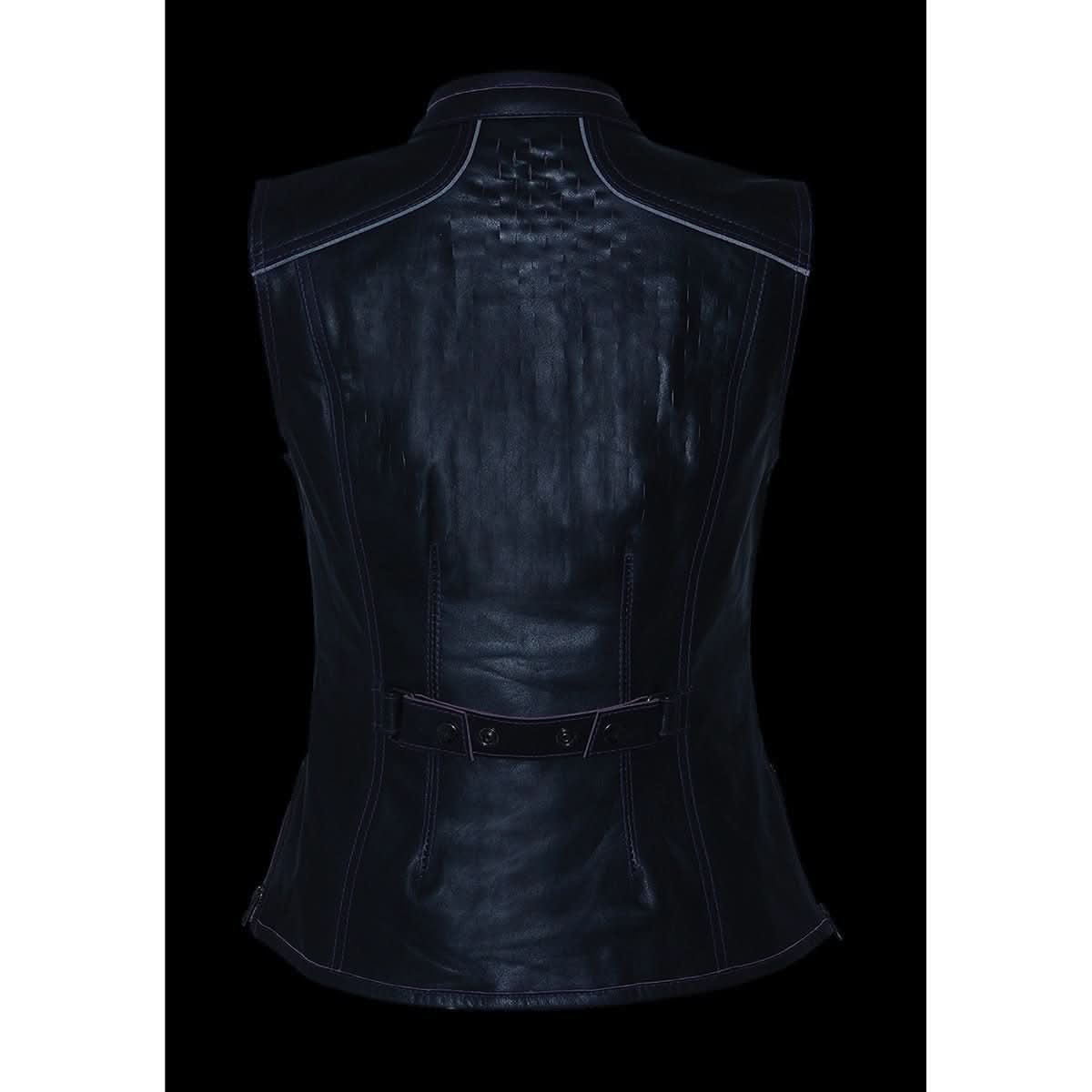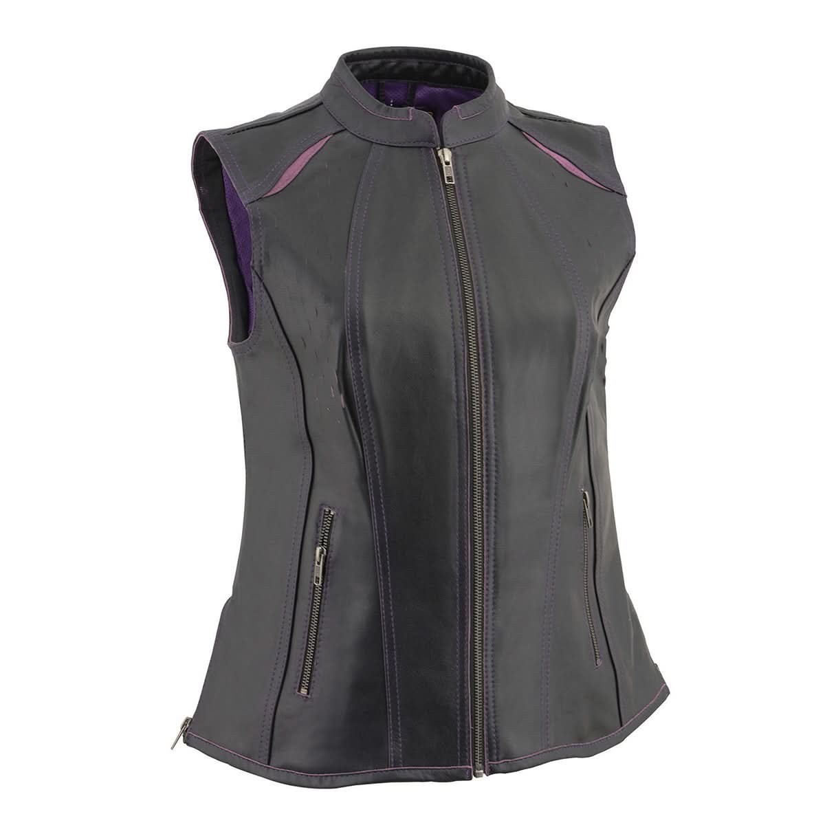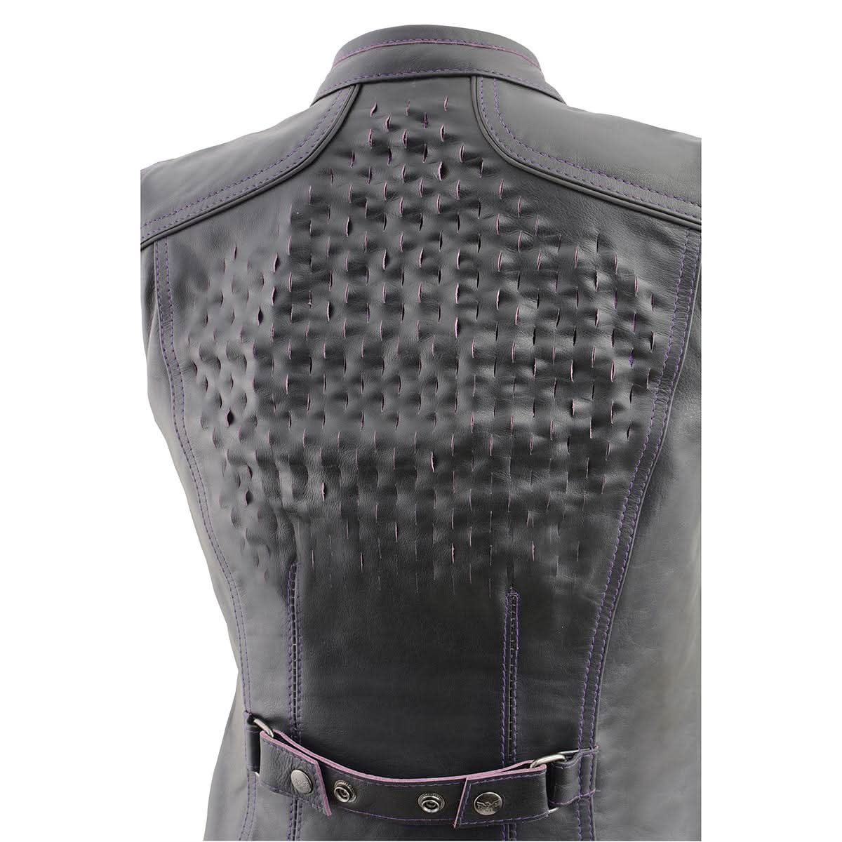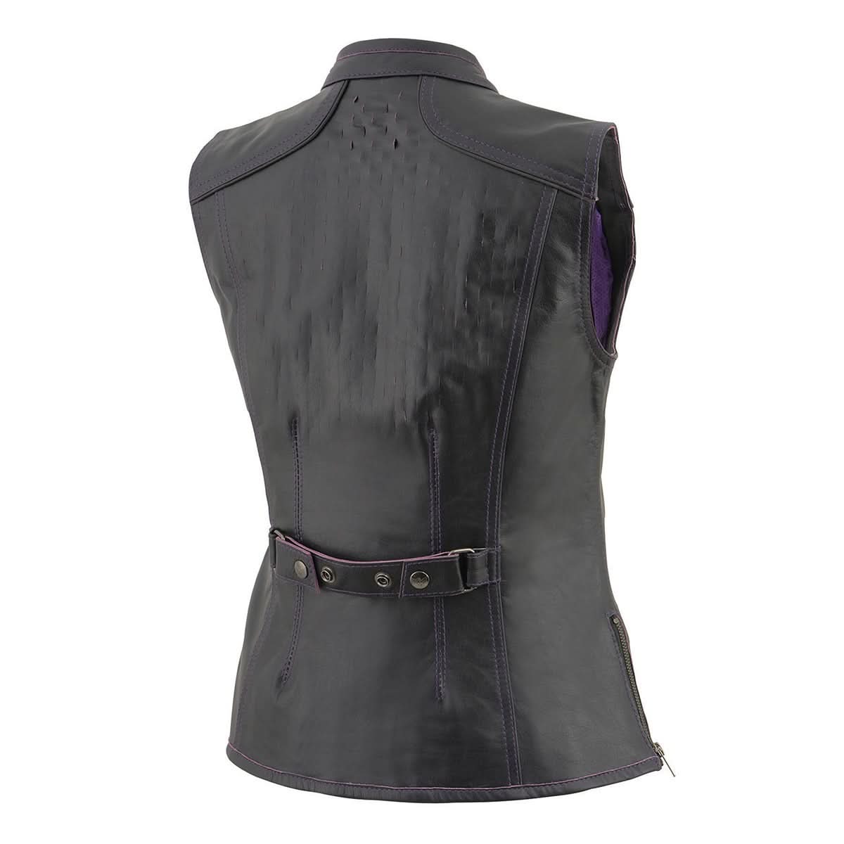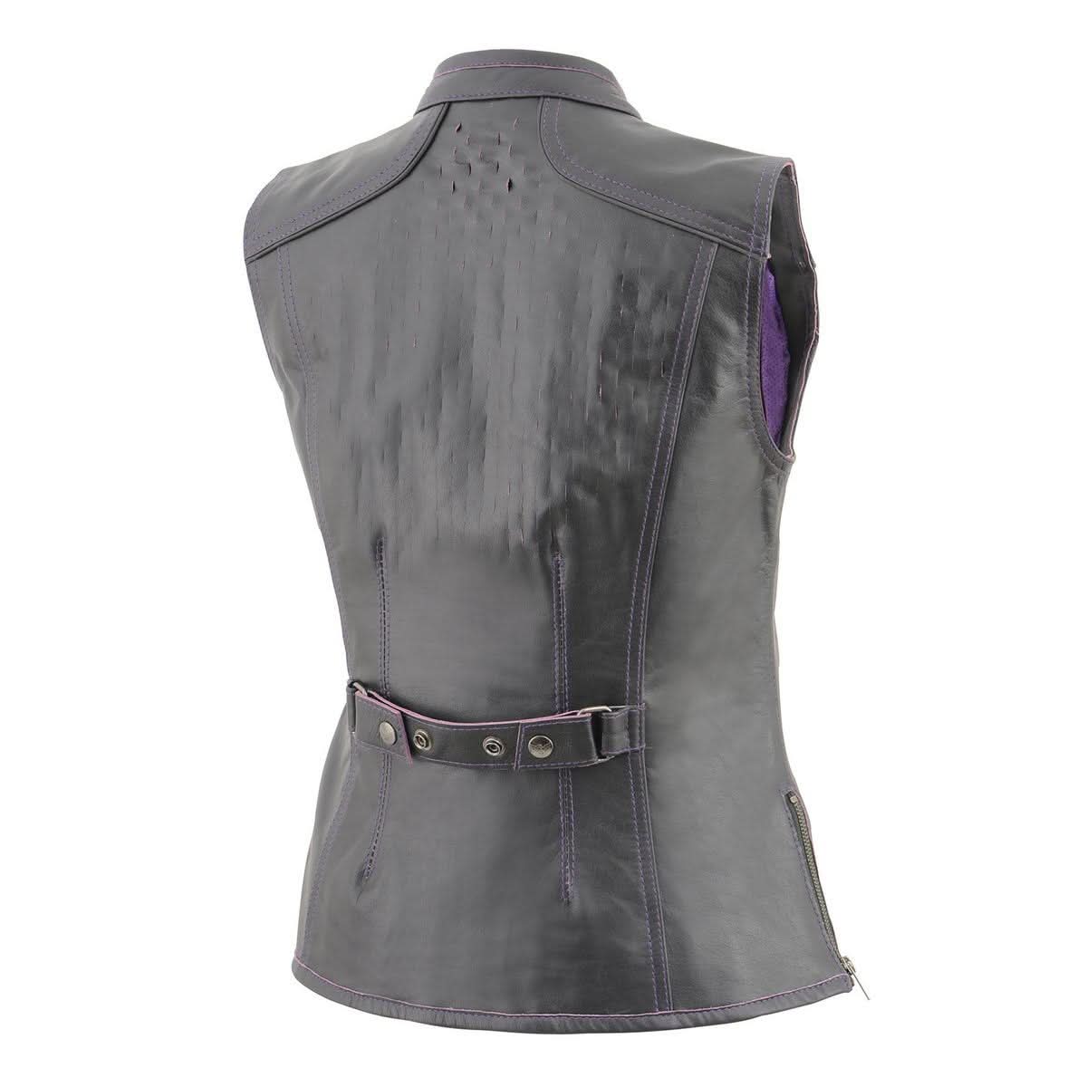 Milwaukee Leather MLL4507 Women's Black Leather Purple Accented Laser Cut Vented Scuba Style Motorcycle Rider Vest