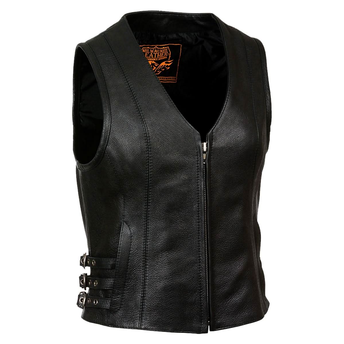 Milwaukee Leather MLL4510 Women's Premium Black Leather Motorcycle Rider Vest w/ Adjustable Side Buckle