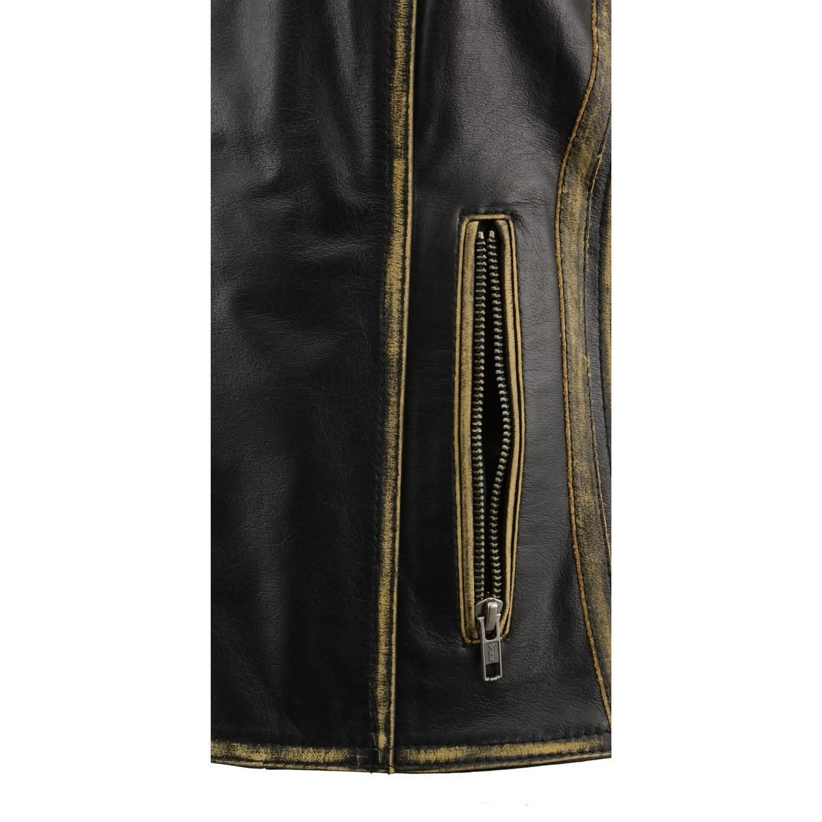 - Made of Lightweight Distressed Leather with Rubbed Seams Design