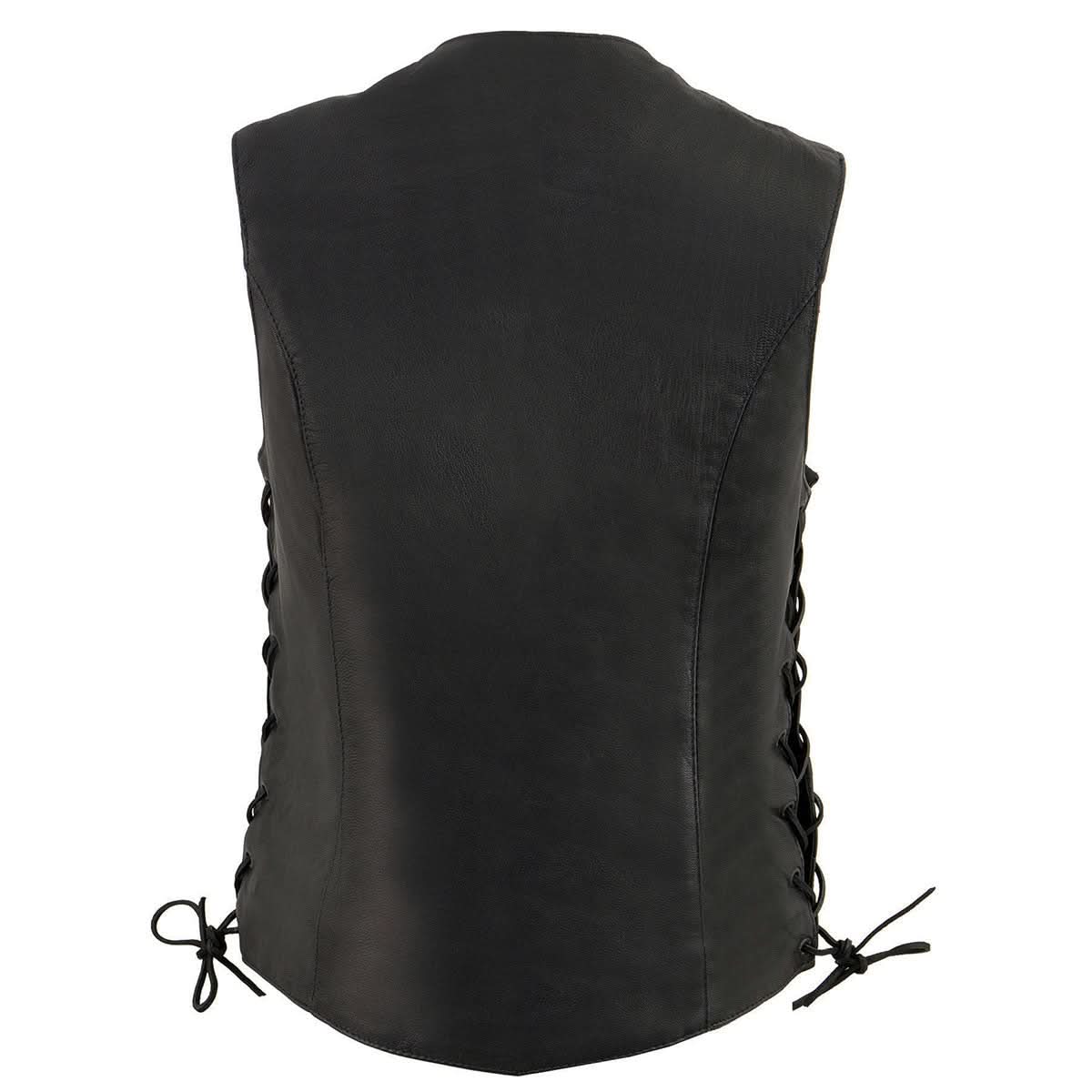 Milwaukee Leather MLL4546 Women's Black Premium Leather Lightweight V-Neck Motorcycle Rider Vest w/ Side Laces