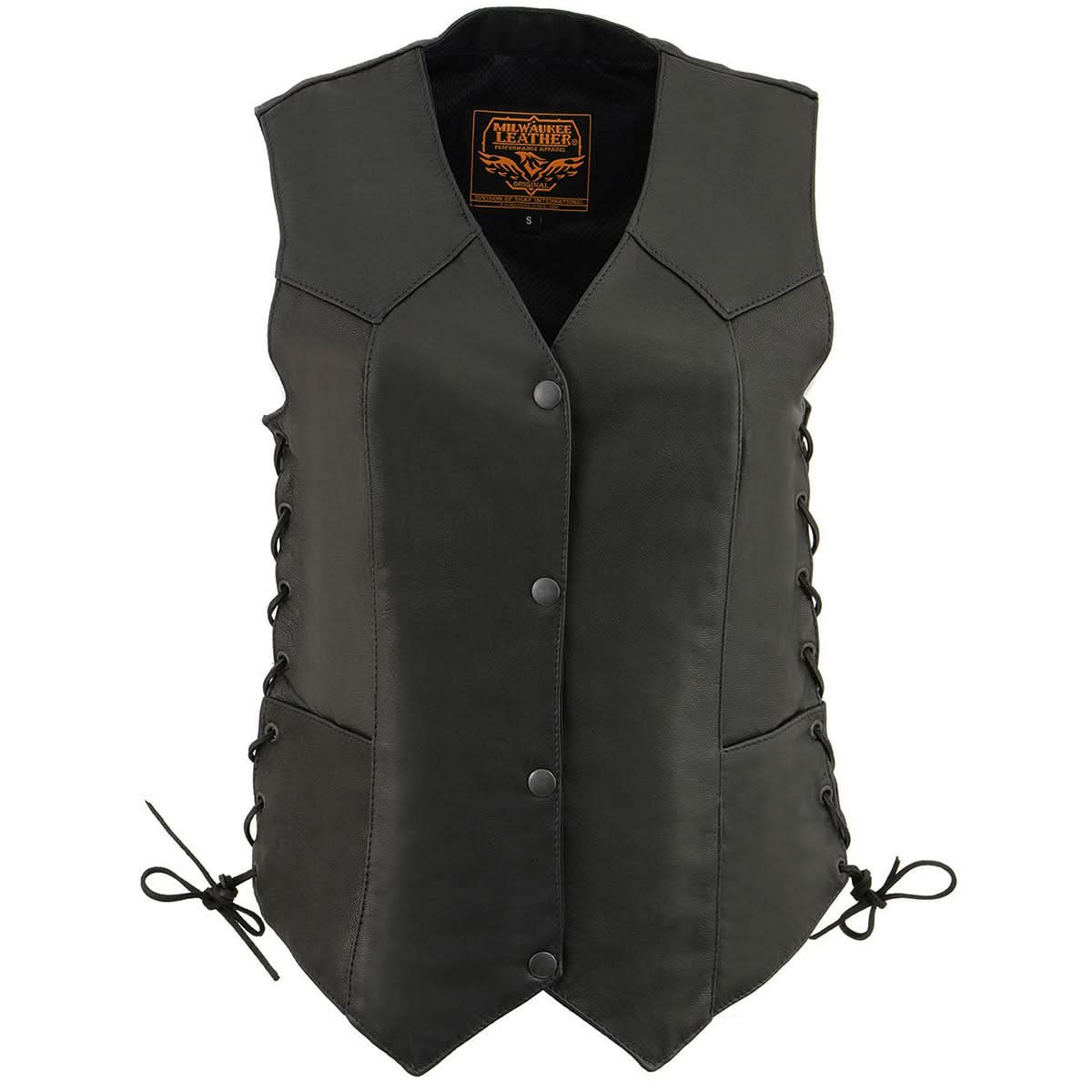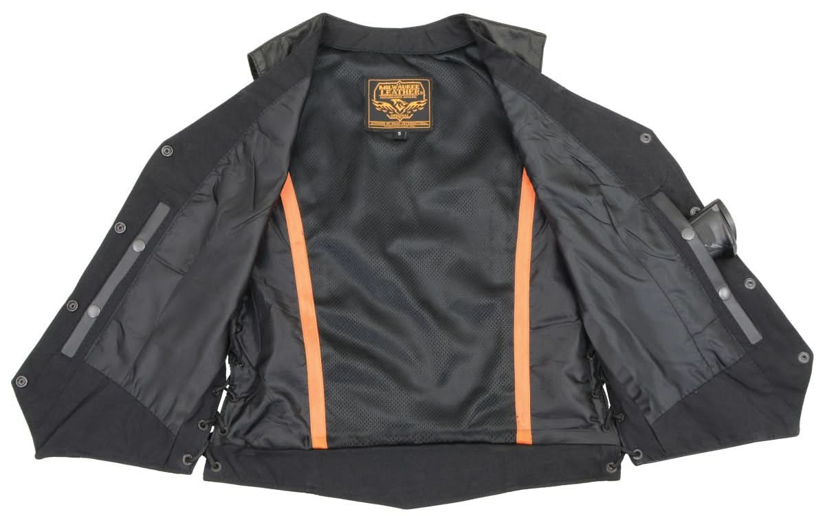 Milwaukee Leather MLL4546 Ladies Black Lightweight Side Lace Four Snap Vest