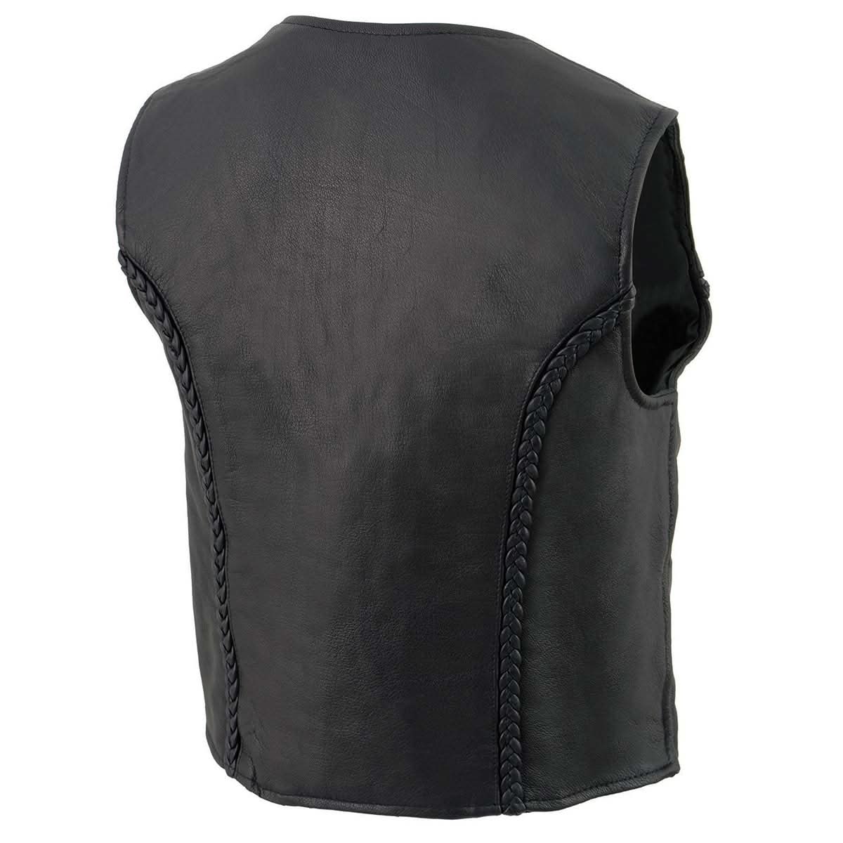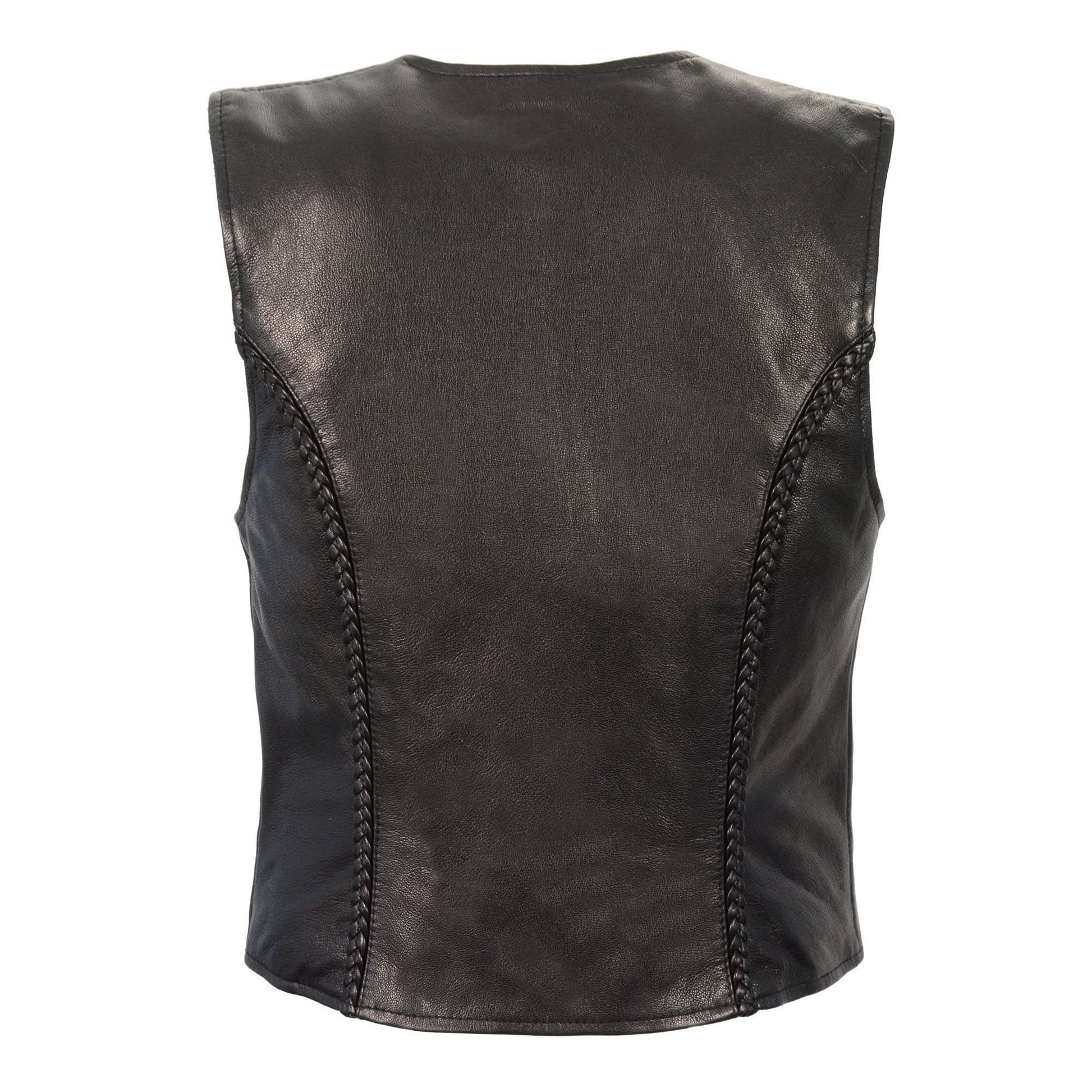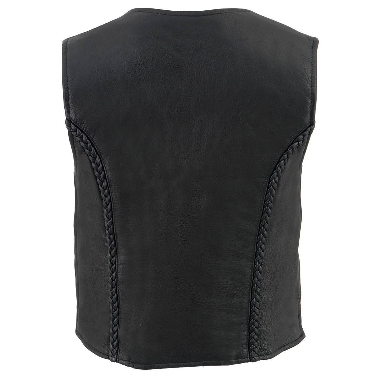 Milwaukee Leather MLL4550 Women's Black Premium Leather Classic Braided Deep V-Neck Motorcycle Rider Vest W/Front Zip