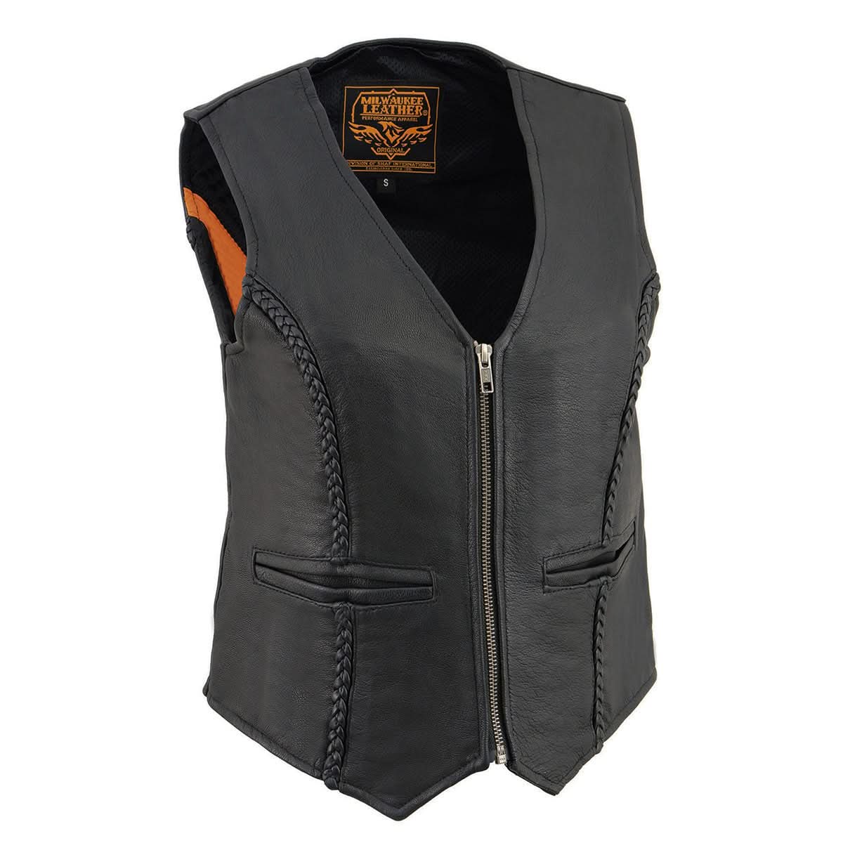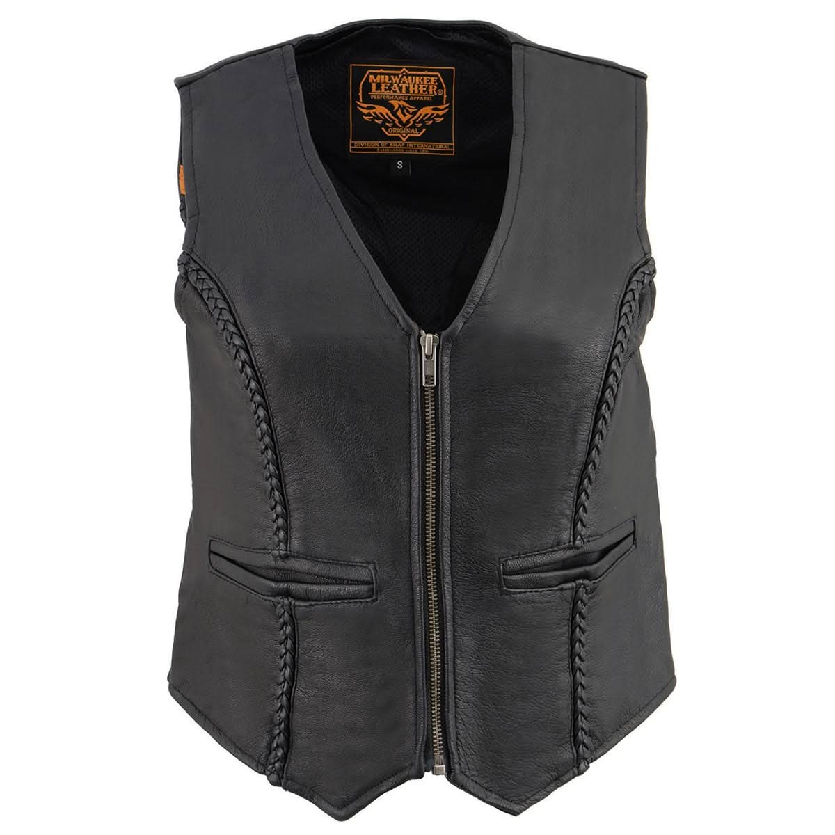 Milwaukee Leather MLL4550 Ladies Black Lightweight Zipper Front Braided Vest