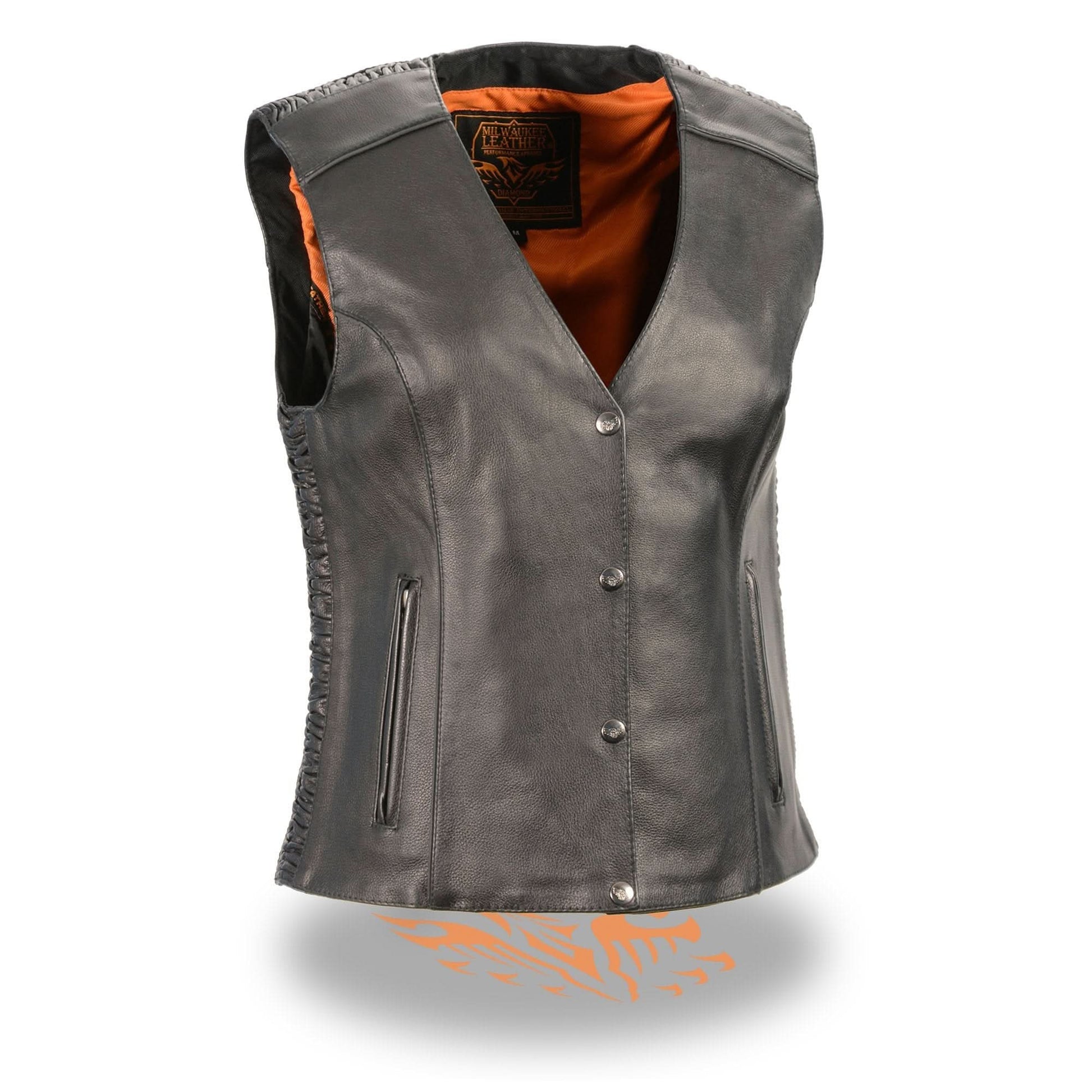 Milwaukee Leather MLL4570 Ladies 'Studded Phoenix' Black Leather Vest with Snap Button Closure