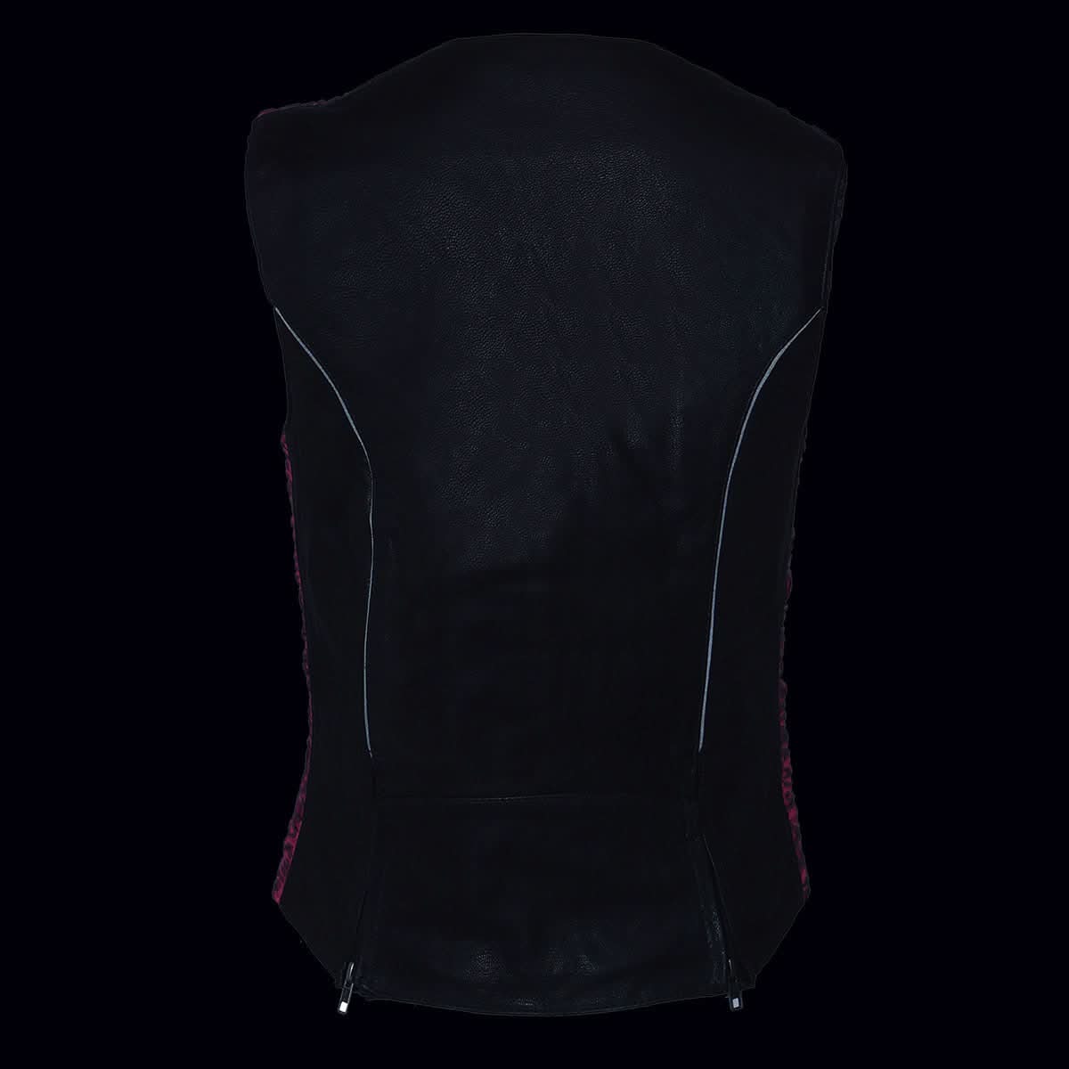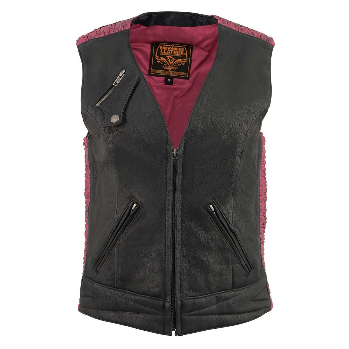 Milwaukee Leather MLL4571 Women's Black and Pink Lightweight Motorcycle Leather Vest w/ Crinkled Leather Design