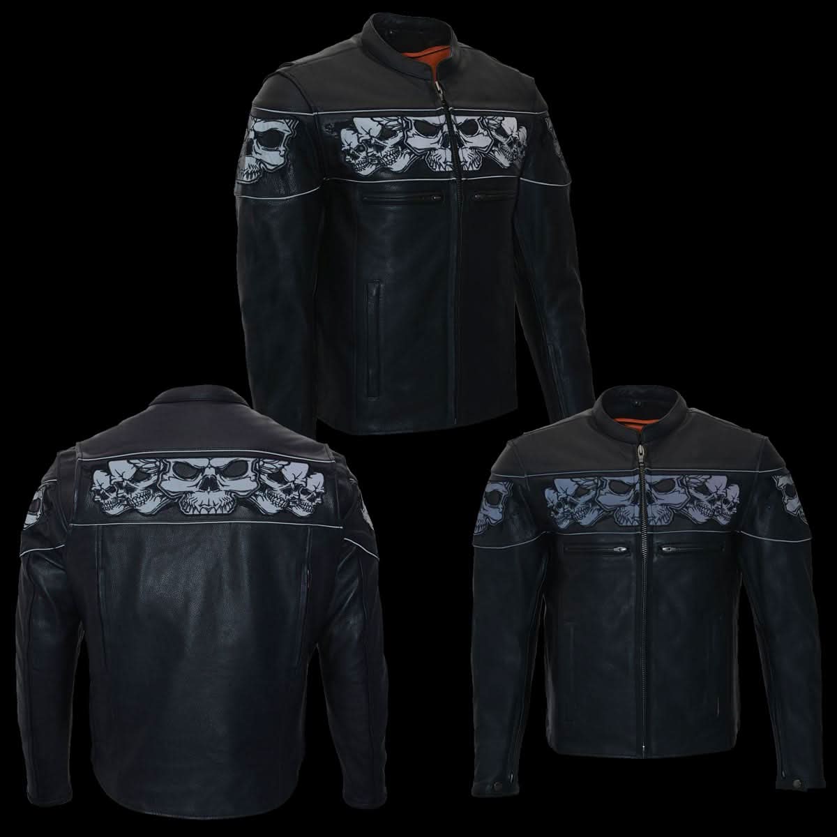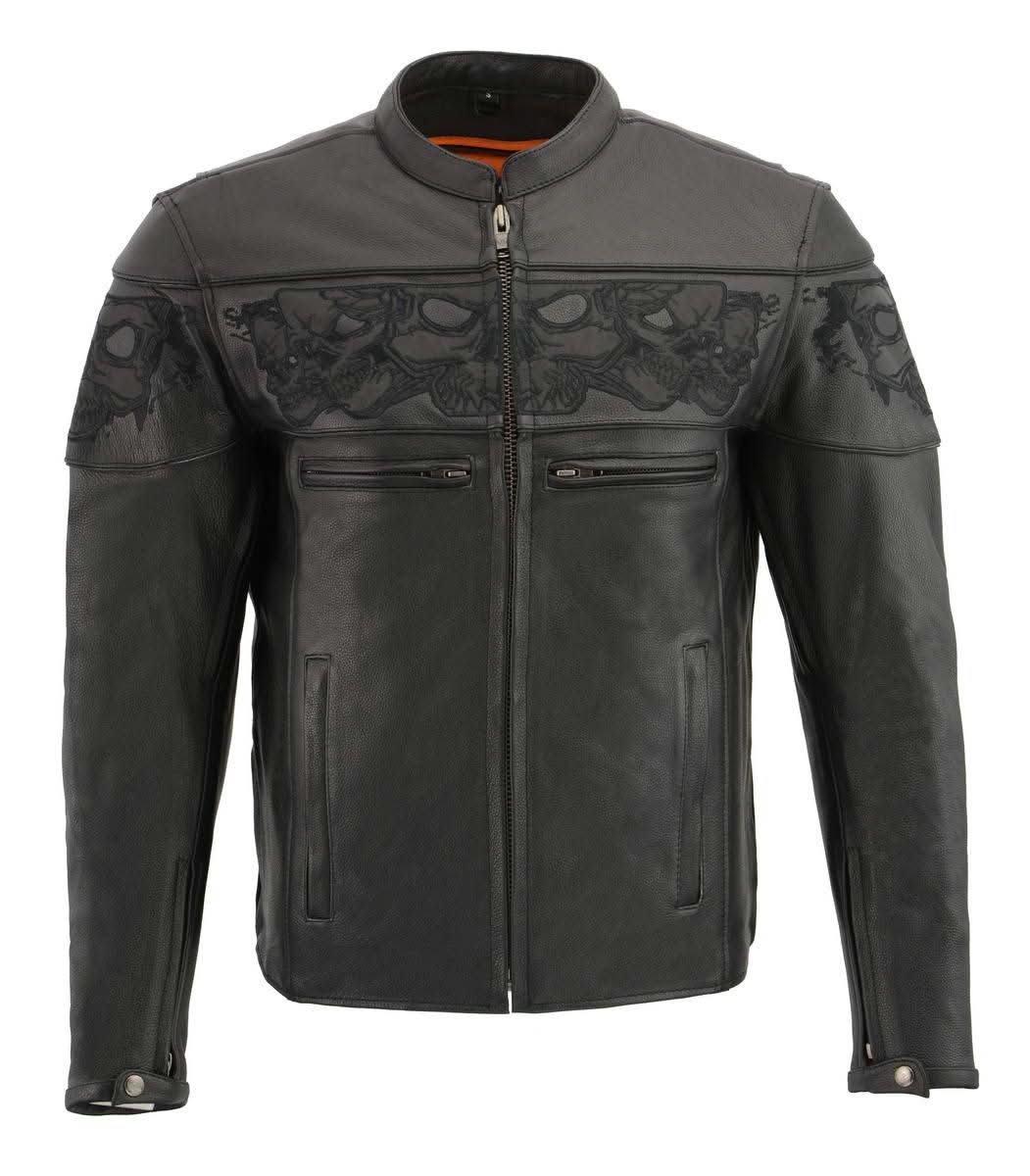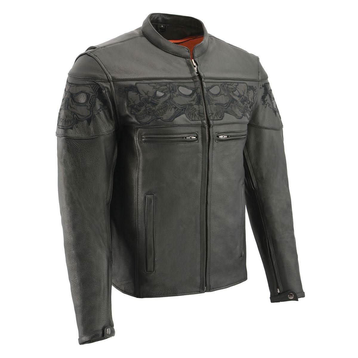 Milwaukee Leather MLM1501 Men's Reflective Skulls Premium Black Leather Motorcycle Jacket w/ Cool-Tec Treatement
