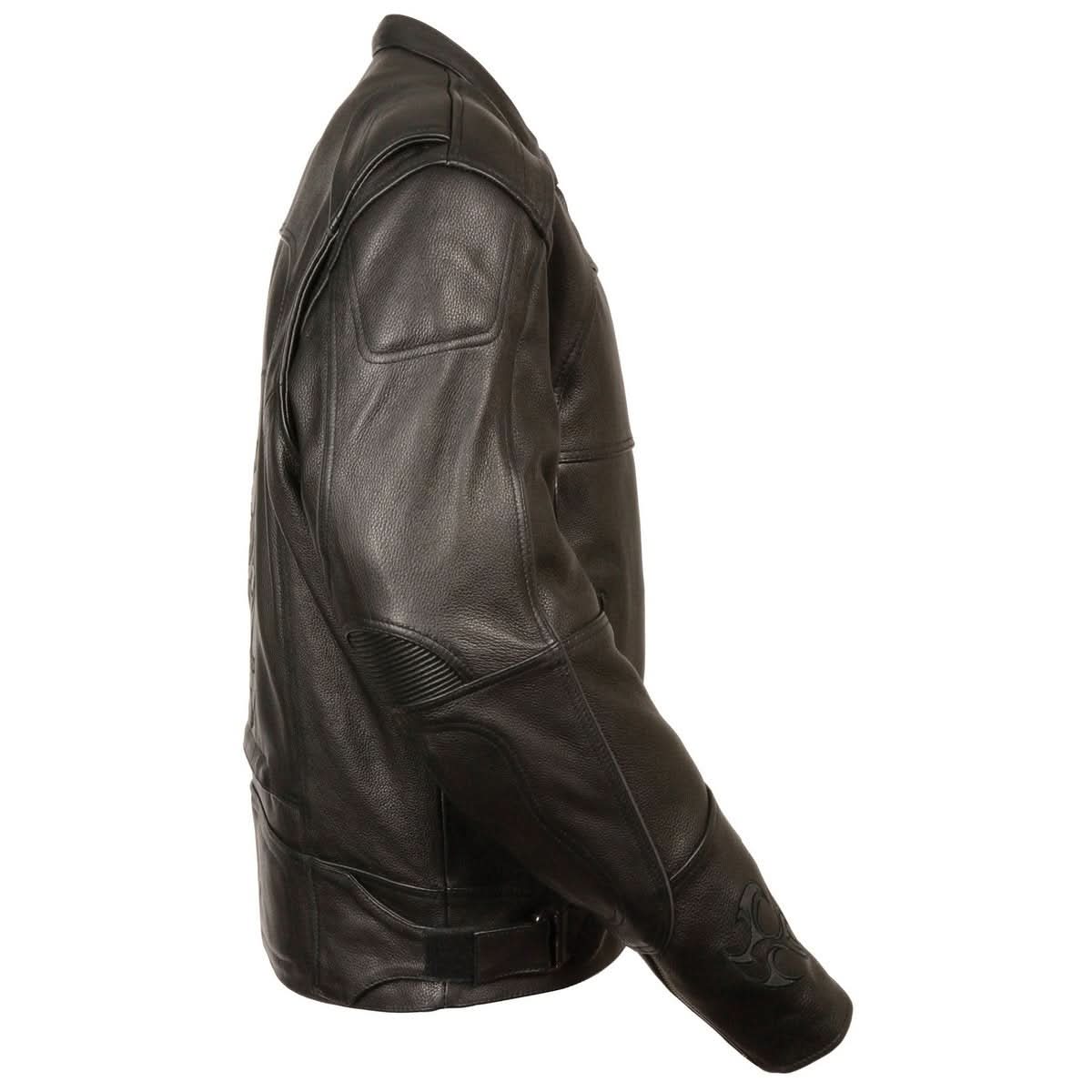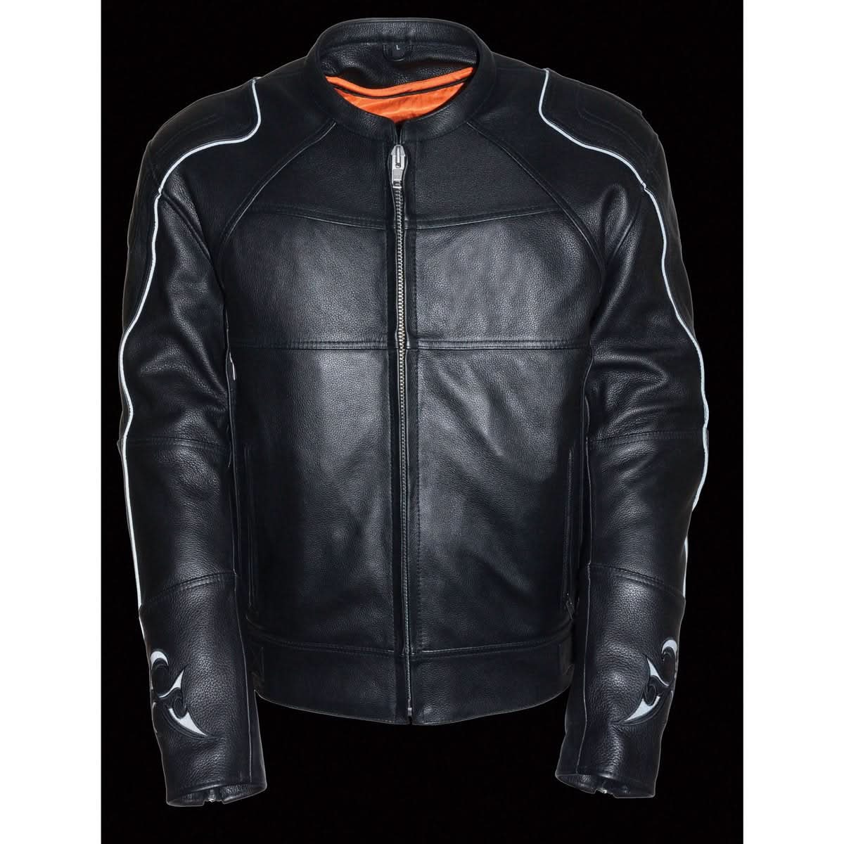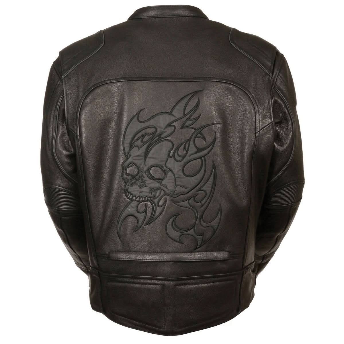 This Contemporary-Cool Genuine Leather Motorcycle Jacket From Milwaukee Leather Is Decked Out With Tons Of Must-Have Details, Including A Comfy Zip-Out Liner, Venting, And Reflective Skull And Flame Back Detailing For Great Visibility.