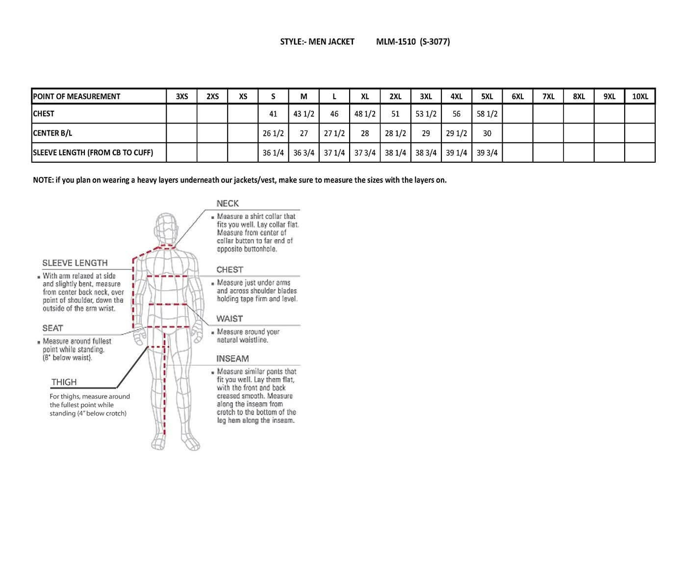 - Full Sleeve Zip Out Thermal Liner