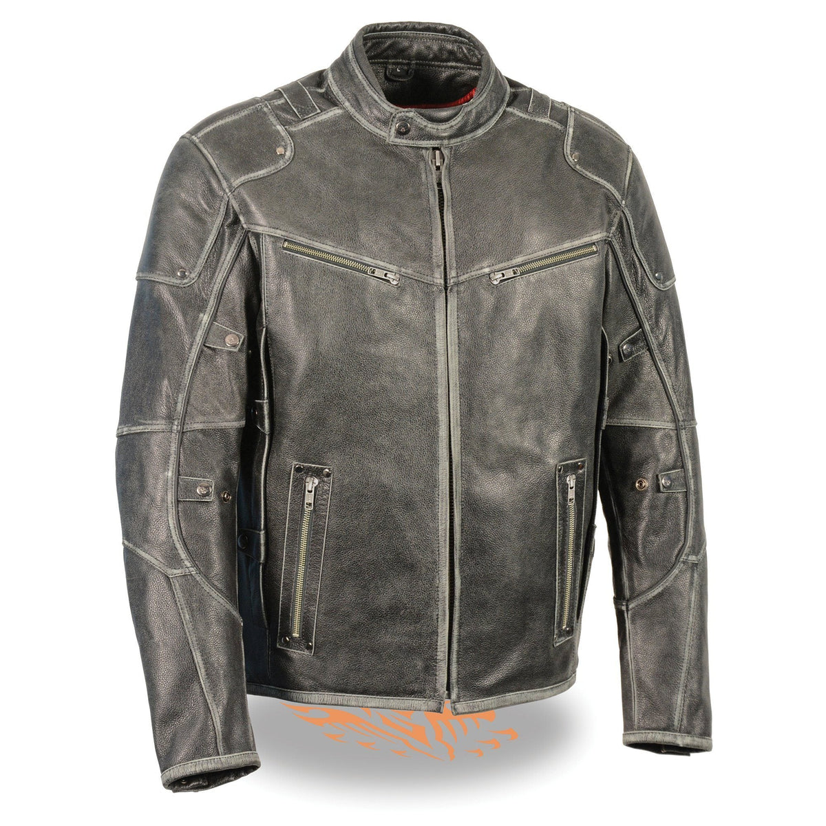 Milwaukee Leather MLM1536 Mens Vintage Distressed Grey Leather Scooter Style Motorcycle Jacket - Reflective Piping