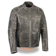 Milwaukee Leather MLM1536 Mens Vintage Distressed Grey Leather Scooter Style Motorcycle Jacket - Reflective Piping - Distressed Grey / Small