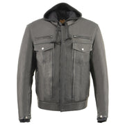 Milwaukee Leather MLM1537 Men's Black Leather ‘Utility Pocket’ Vented Jacket with Removable Hoodie