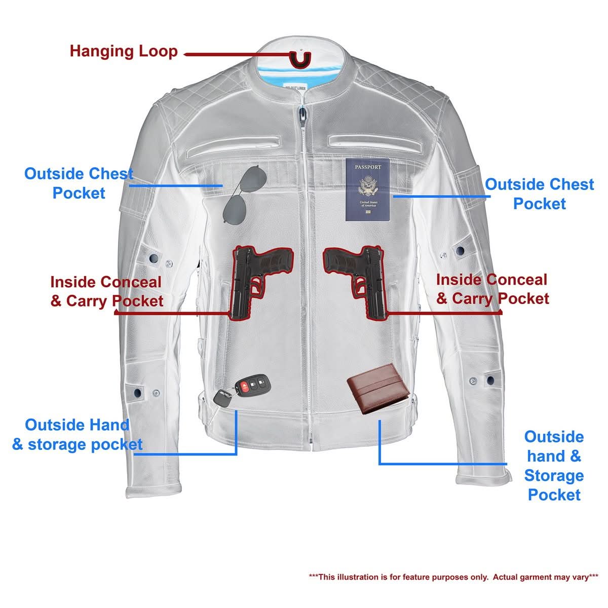 Milwaukee Leather MLM1545 Men’s Quilted Pattern Triple Vent Black Leather Scooter Jacket
