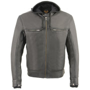 Milwaukee Leather MLM1552 Men's Black Lightweight Leather Scooter Jacket with Removable Hoodie
