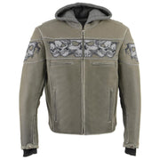 Milwaukee Leather MLM1562 Men's Distressed Grey Leather Jacket with Reflective Skulls