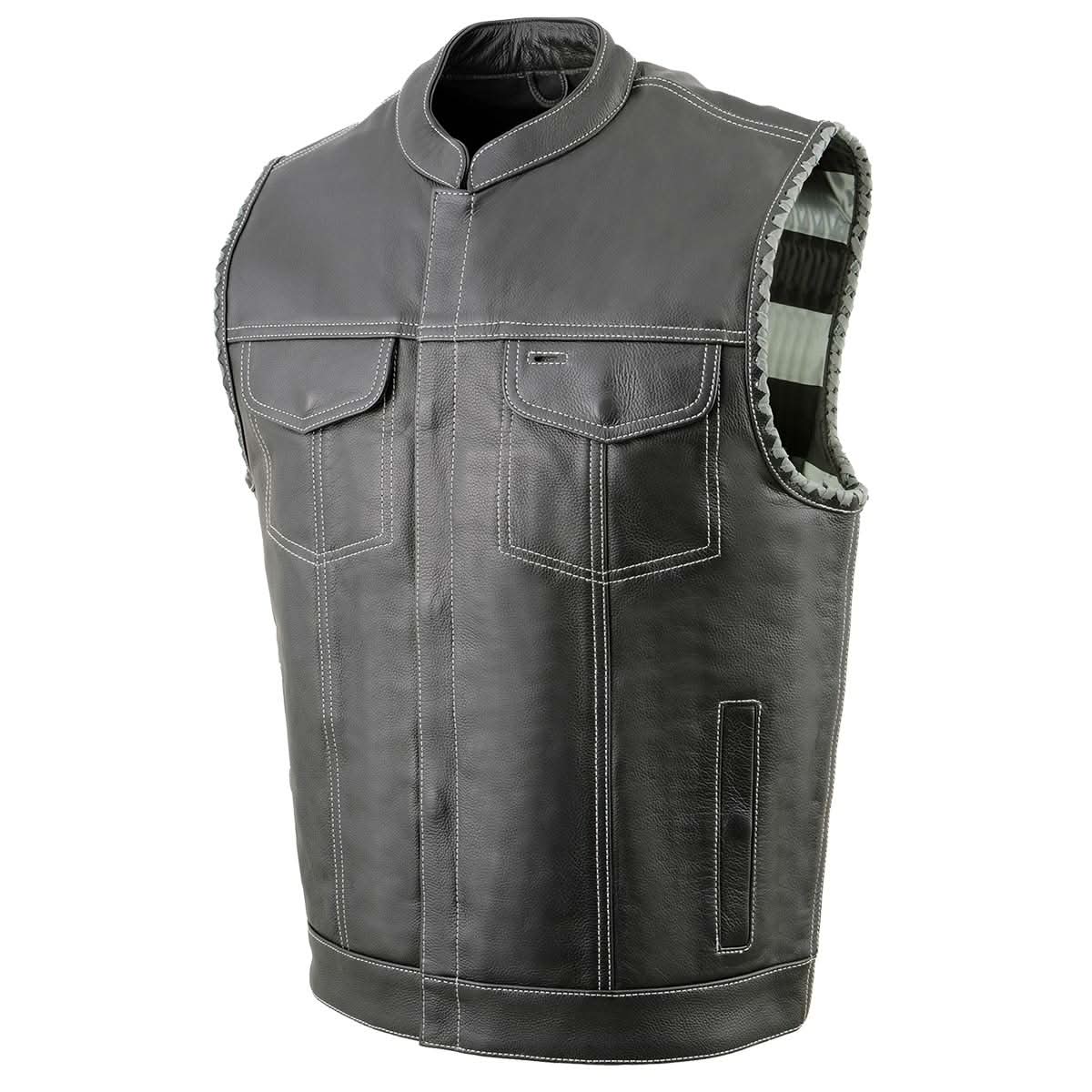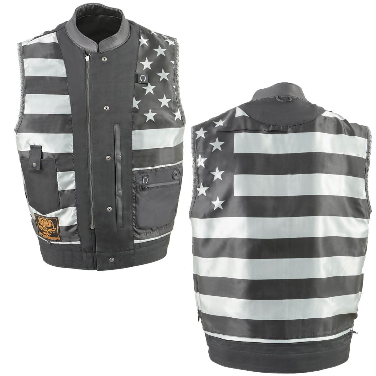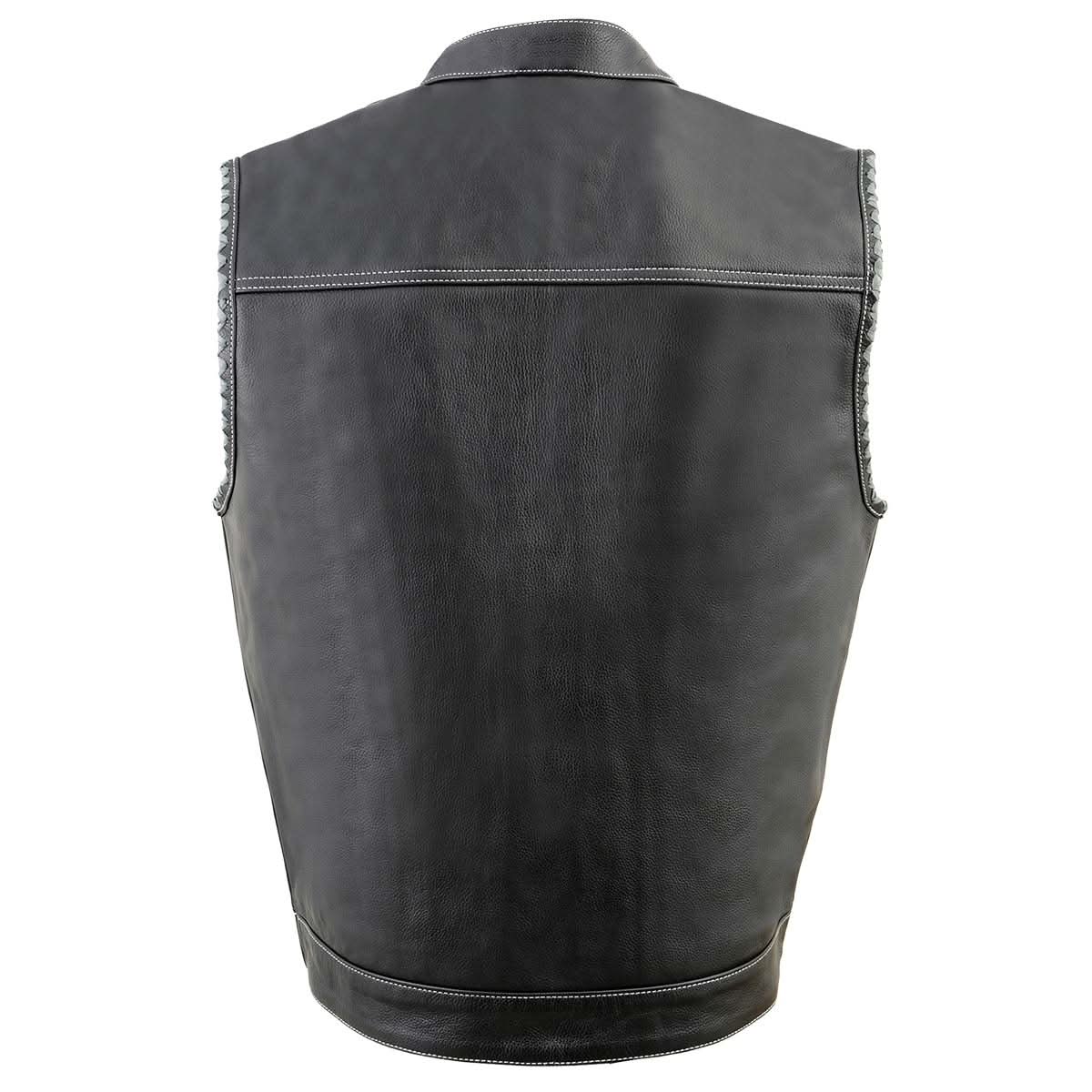 Milwaukee Leather MLM3507 Men’s ‘Old Glory’ Laced Arm Holes Black Leather w/ Grey Stitching Motorcycle Vest
