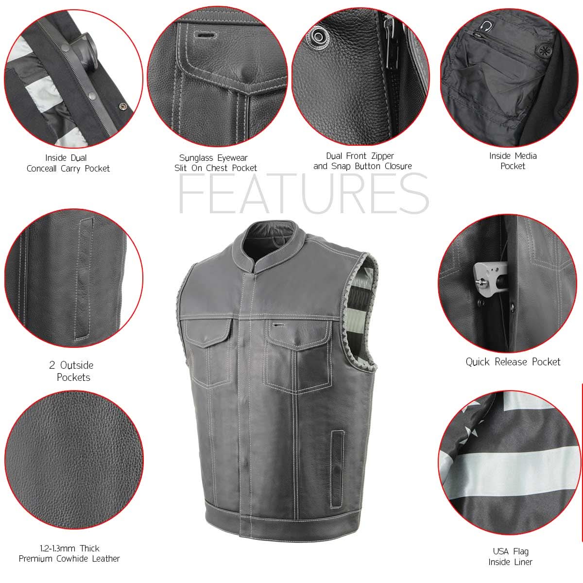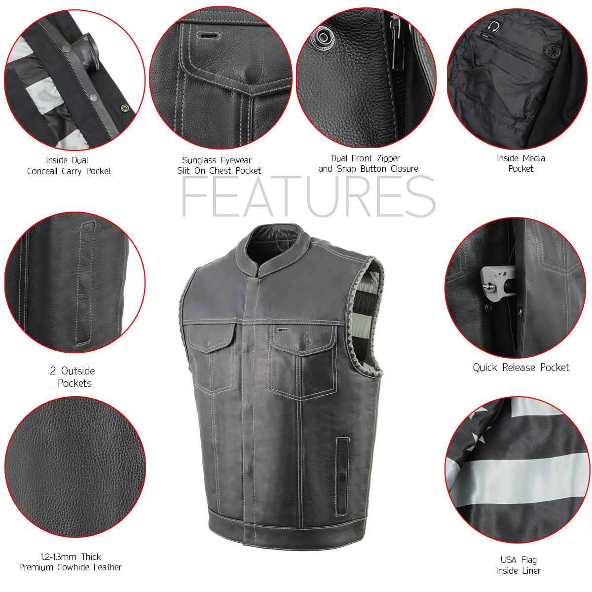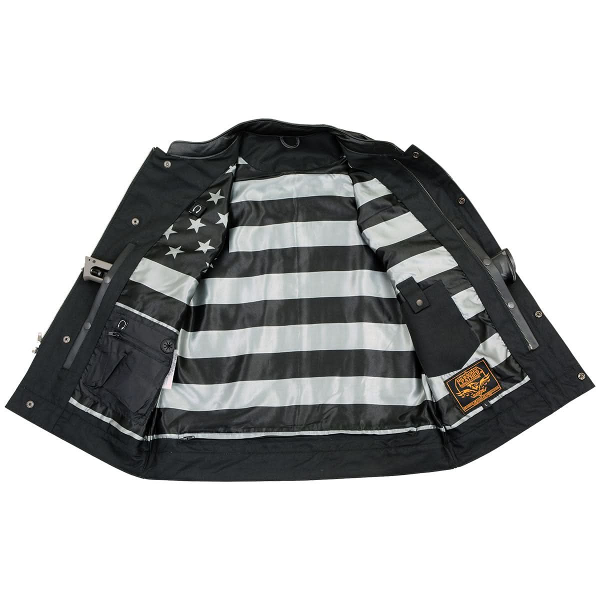 Milwaukee Leather MLM3507 Men’s ‘Old Glory’ Laced Arm Holes Black Leather w/ Grey Stitching Motorcycle Vest