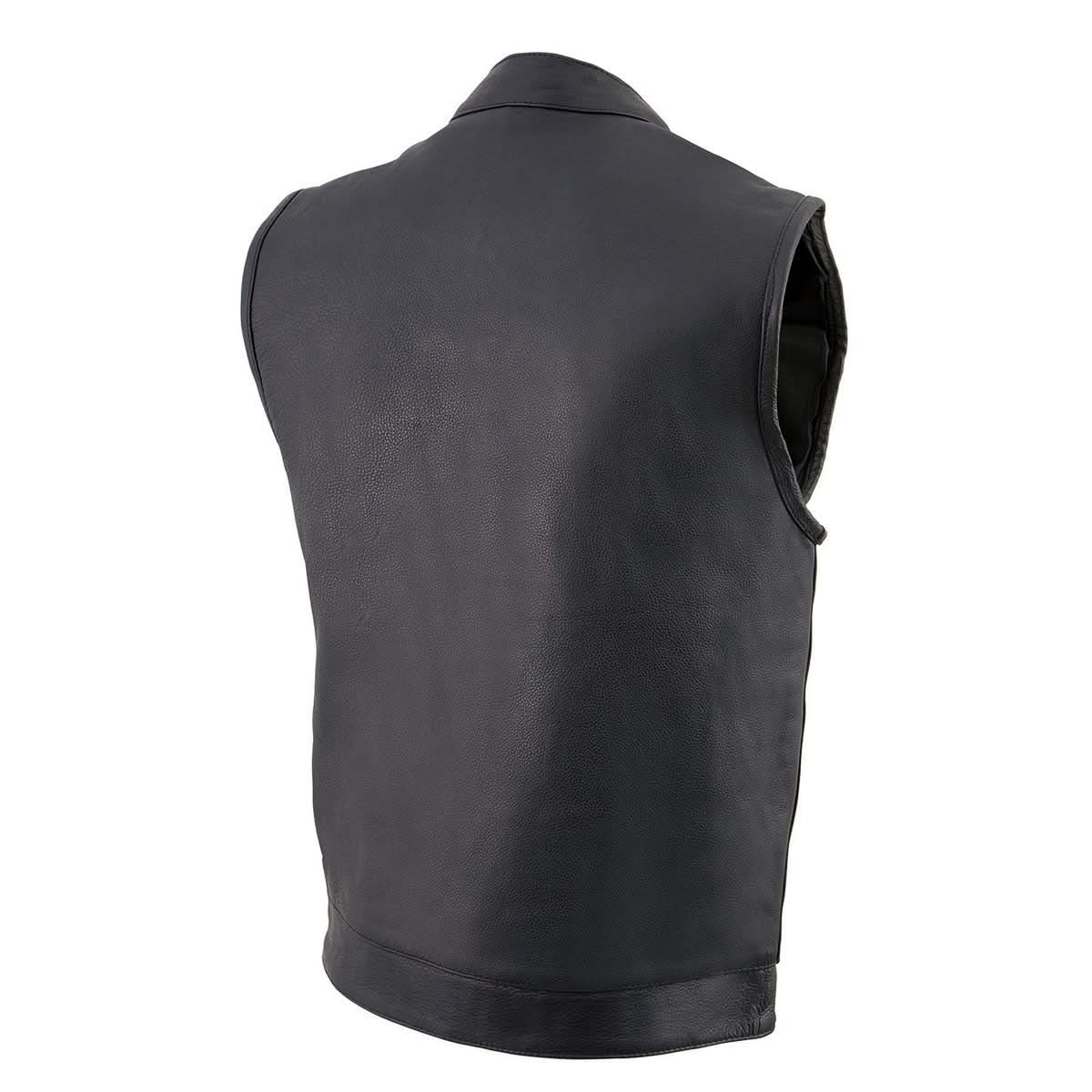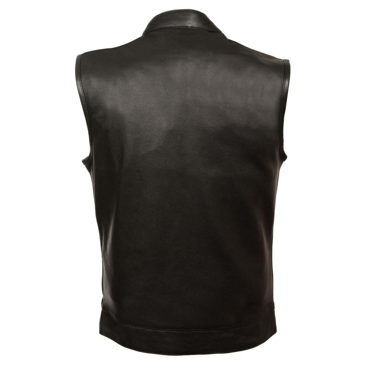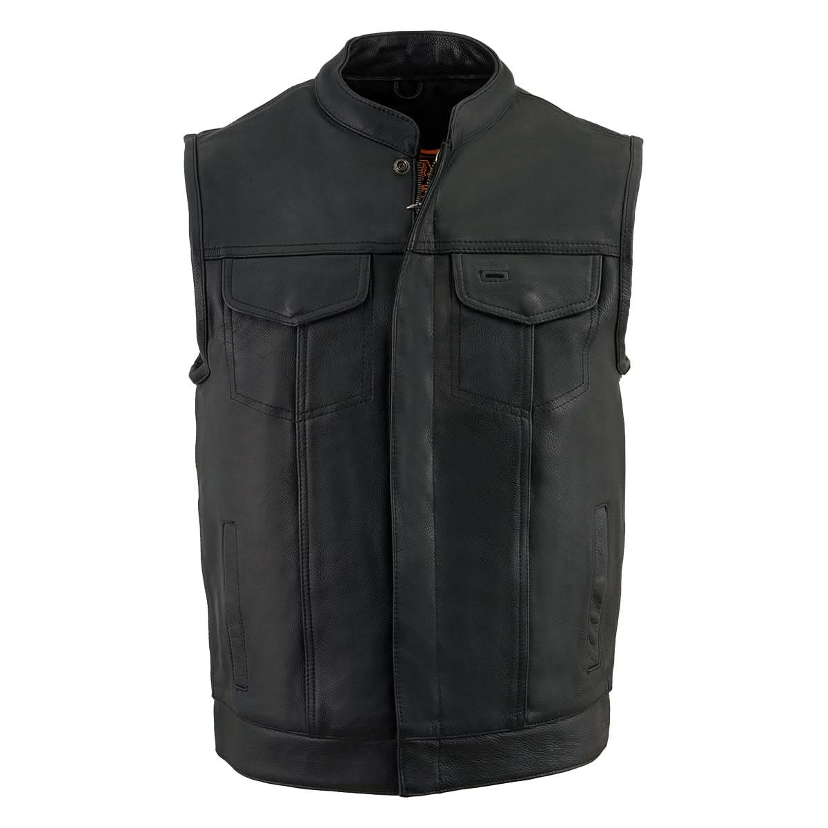 Milwaukee Leather MLM3510 Men's Black Premium Leather Club Style Vest - Dual Closure Open Neck Motorcycle Rider Vest