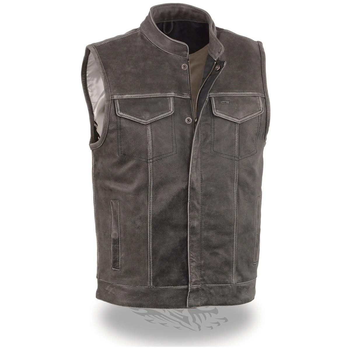 Milwaukee Leather MLM3513 Men's Distressed Grey Dual Closure Open Neck Club Style Motorcycle Leather Vest