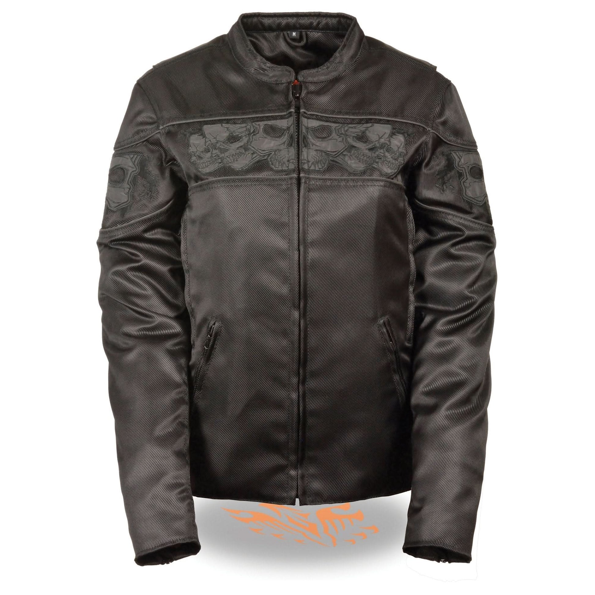 Milwaukee Leather MPL2730 Women's Black Crossover Textile Scooter Jacket with Reflective Skulls